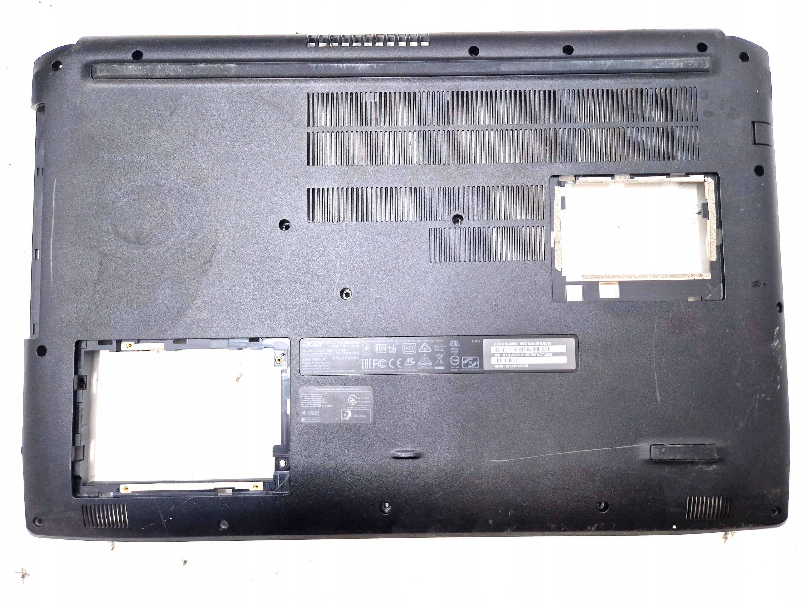 Просматривая «Нижний корпус Acer A517-51», вы можете быть уверены, что данный товар из каталога «[rubrica_name]» будет доставлен из Польши и проверен на целостность. В цене товара, указанной на сайте, учтена доставка из Польши. Внимание!!! Товары для Евросоюза, согласно законодательству стран Евросоюза, могут отличаться упаковкой или наполнением.