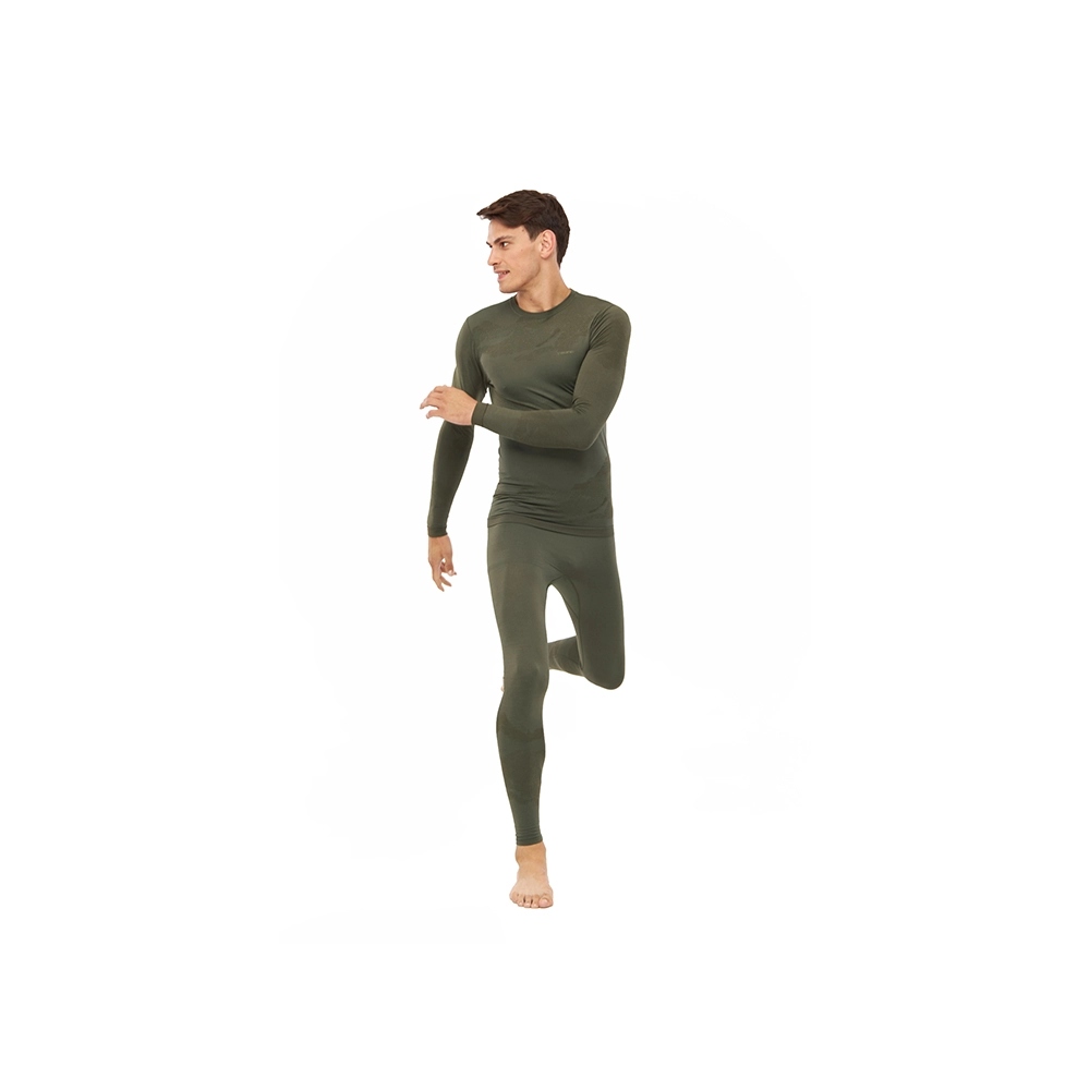 Завдяки інноваційному поєднанню таких матеріалів, як мериносова шерсть, поліестер, поліамід і еластан, нижня білизна забезпечує максимальний комфорт і тепло в екстремальних погодних умовах, навіть при температурі до -25°C.