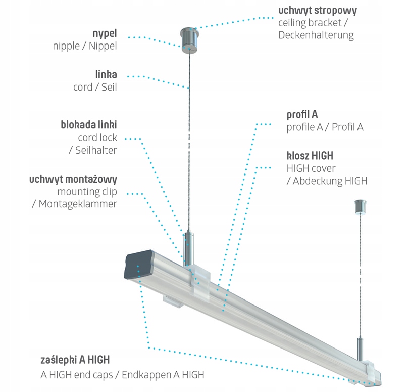 Доступний у чотирьох кольорах: сірий (для необроблених і срібних профілів), чорний, білий, нержавіюча сталь. Ковпачки випускаються в варіантах: без отвору і з отвором (для шнура живлення). На фото 5 показана висока торцева кришка для світлодіодного профілю типу А