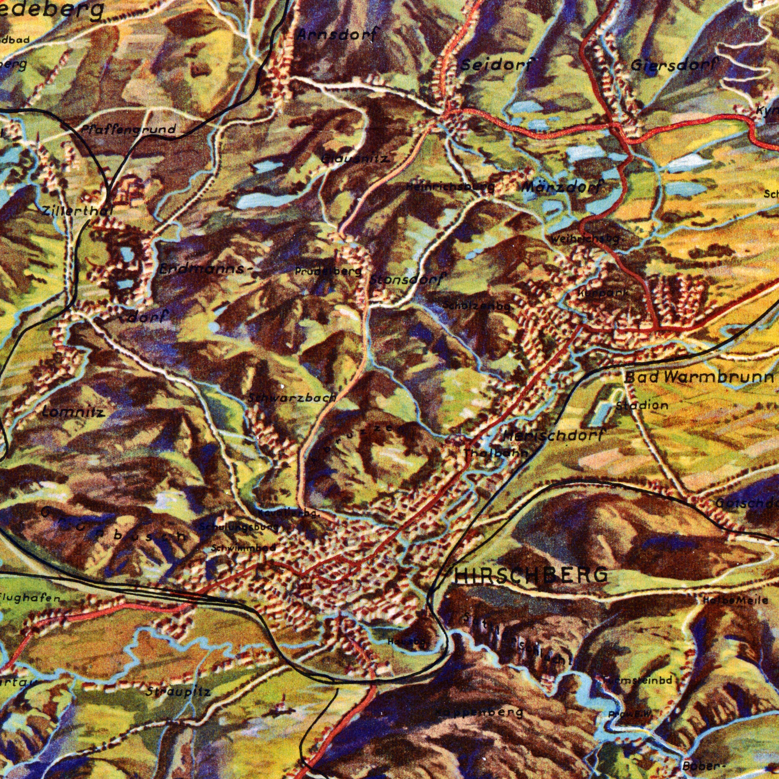 Завдяки своїй яскравості Кольори та майстерно переданий рельєф, карта справляє враження тривимірності. Справжня рідкість! Ми жителі Нижньої Сілезії, знаємо її досить добре, збираємо карти і бачили багато з них, але ми витратили багато часу на цю панораму з лупою в руках, милуючись її деталями.