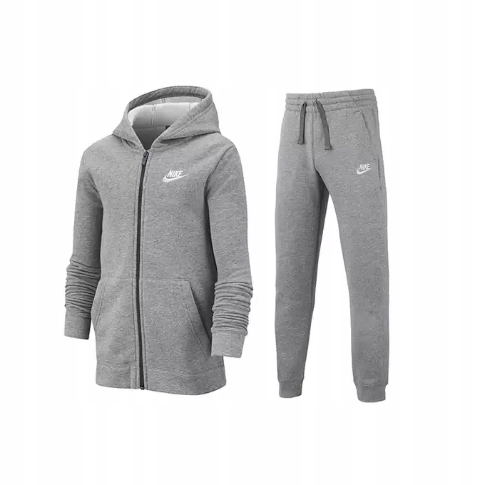 Комплект дитячих спортивних костюмів Nike BV3634-091 з бавовни та поліестеру. Толстовка на блискавці та спортивні штани. Набір спортивних костюмів ідеально підходить для повсякденного використання та фізичних навантажень. Приємна на дотик тканина забезпечує комфорт використання. Дитячі спортивні штани Nike. Світшот має застібку-блискавку по всій довжині та дві відкриті бічні кишені. Спортивні штани також мають дві відкриті кишені з боків і еластичний шнурок на талії та ногах.