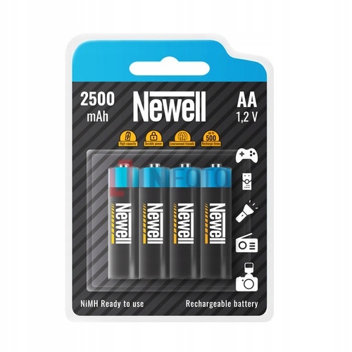Акумулятори Newell AA 2500 розроблено для живлення пристроїв із високим енергоспоживанням. До них належать спалахи, ігрові контролери, електричні іграшки, моделі транспортних засобів та багато іншого.
