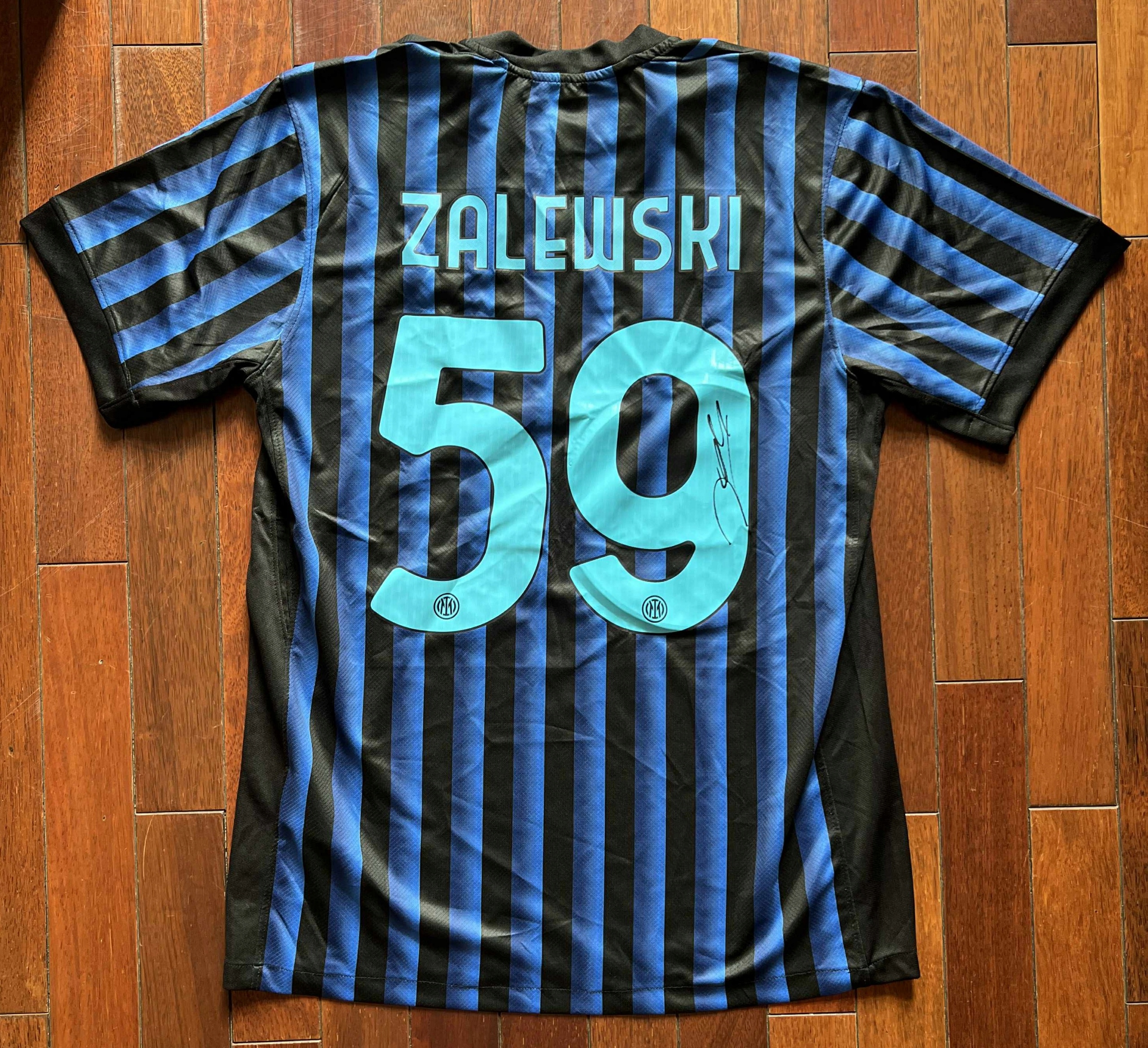 t -сорочка з номером 59 між Міланом з автографом Нікола Залевського. Унікальна позиція для футбольних фанатів. Включає сертифікат автентичності у вигляді наклейки QR -коду, виданого авторитетною американською компанією.