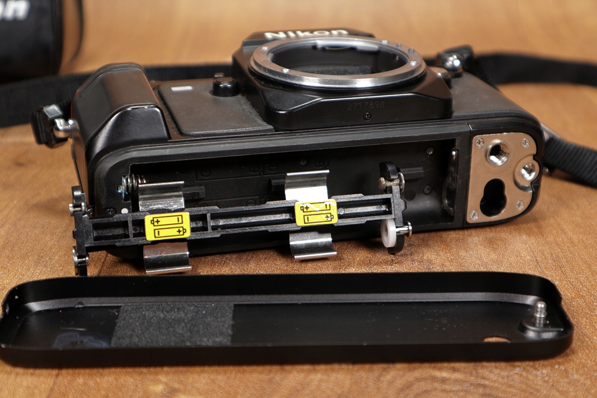 Фотоапарат у хорошому стані з незначними слідами використання, батарейний відсік чистий, акумуляторна рамка ціла та без тріщин.