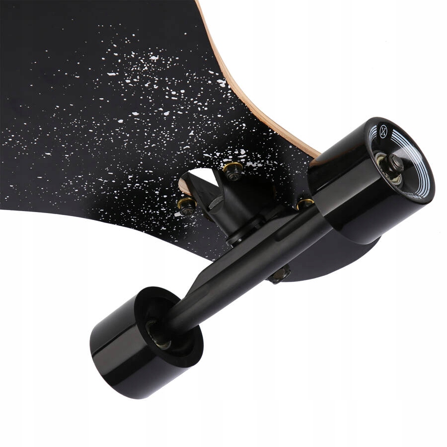 Лонгборд Череп деревина від Nils Extreme - це скейтборд, призначений для рекреаційної їзди для дітей та підлітків на затверділих поверхнях, а також для виконання технічних хитрощів у скейт -парках та на пандусах . У NILS Extreme Longboard є 7 -дюймові алюмінієві вантажні автомобілі, які забезпечують точний контроль над напрямком, а колеса PU розміром 60 х 45 мм і твердість 85А пропонують відмінну адгезію та поглинають удари, що необхідно при русі на різних поверхнях. Використання 9-шарових канадських фанери кленової фанери забезпечує високу міцність та довговічність. У свою чергу, підшипники класу ABEC 7 гарантують відмінне водіння та швидкість. Скейтборд оснащений поліуретановими колесами. Це арматура гуми (тобто поєднання гуми з цим сильним матеріалом), з ще сильнішим матеріалом. Продукт, пристосований для використання людьми різного віку, але він не підходить для приготування хитрощів та шліфування.