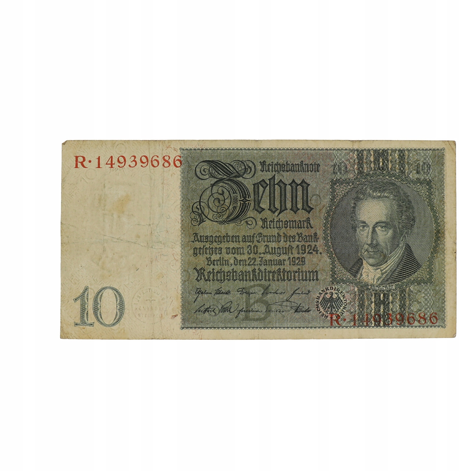 Німеччина - 10 рейхмарок - 1929 - рейхсбанкнота - серія R