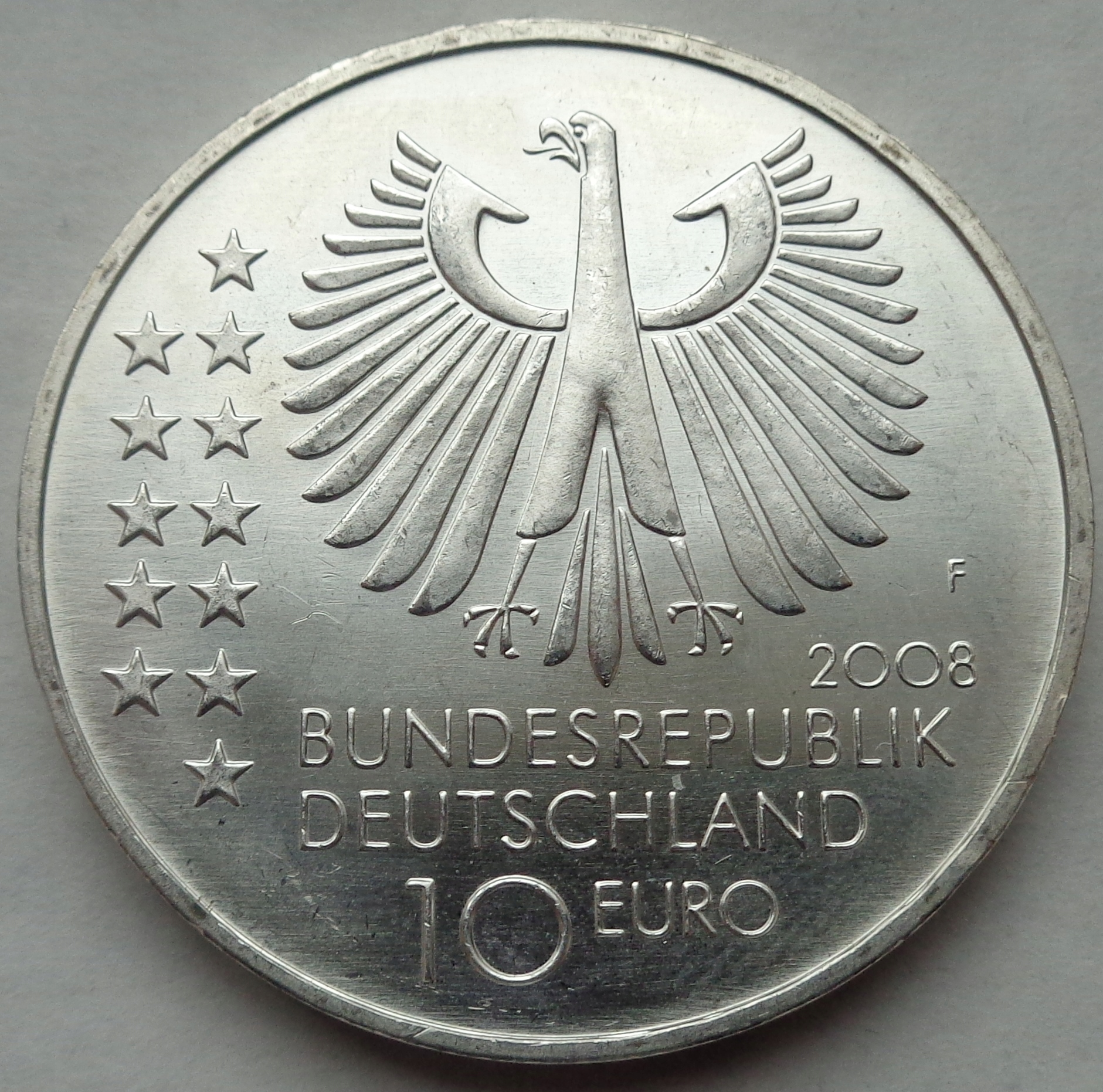 НІМЕЧЧИНА - 10 ЄВРО - 2008 F - Макс Планк - срібло 925 проби