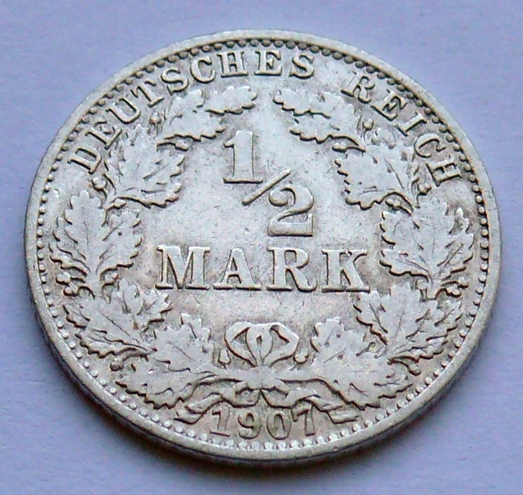 НІМЕЧЧИНА - 1/2 МАРКИ 1907 р. А - СРІБЛО Ag