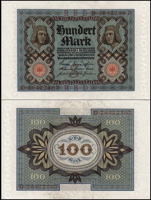 НІМЕЧЧИНА, 100 МАРОК 1920 р., вибір 69b
