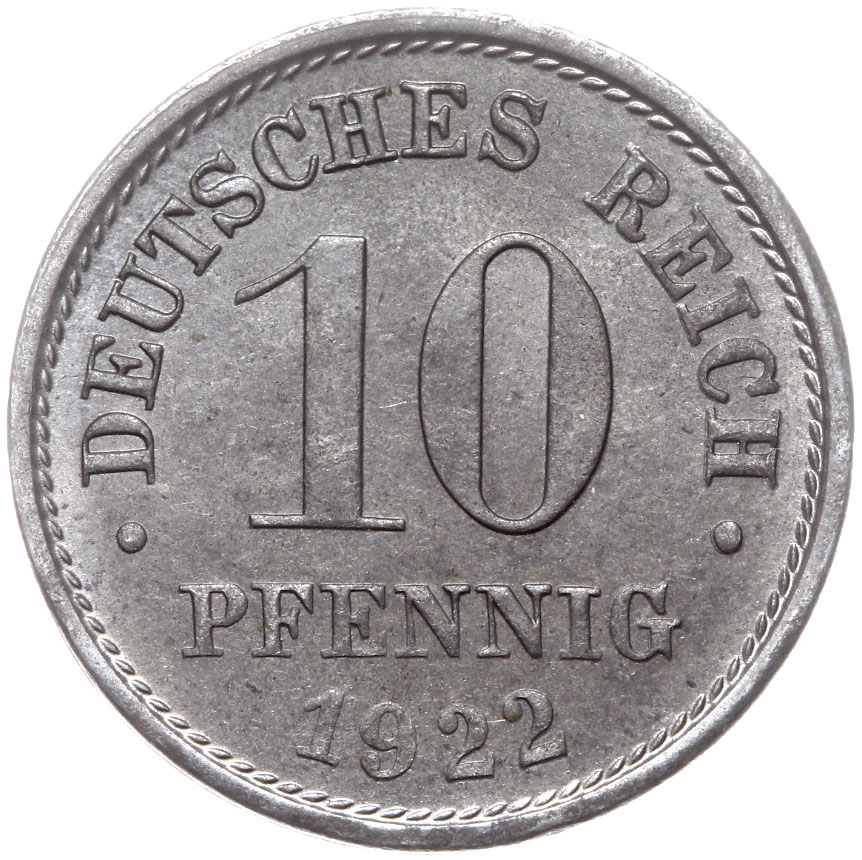 Німеччина 10 PFENNIG 1922 F залізо-монетний двір з роликом