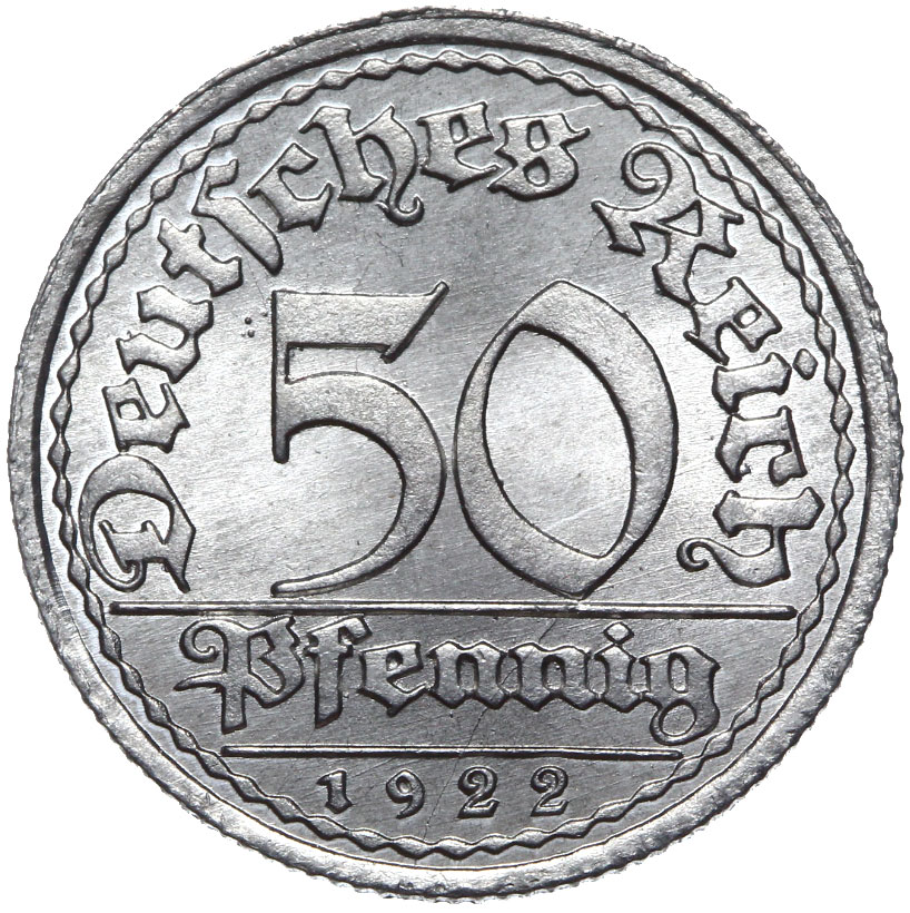 Німеччина-50 Pfennig 1922 E-монетний двір з роликом