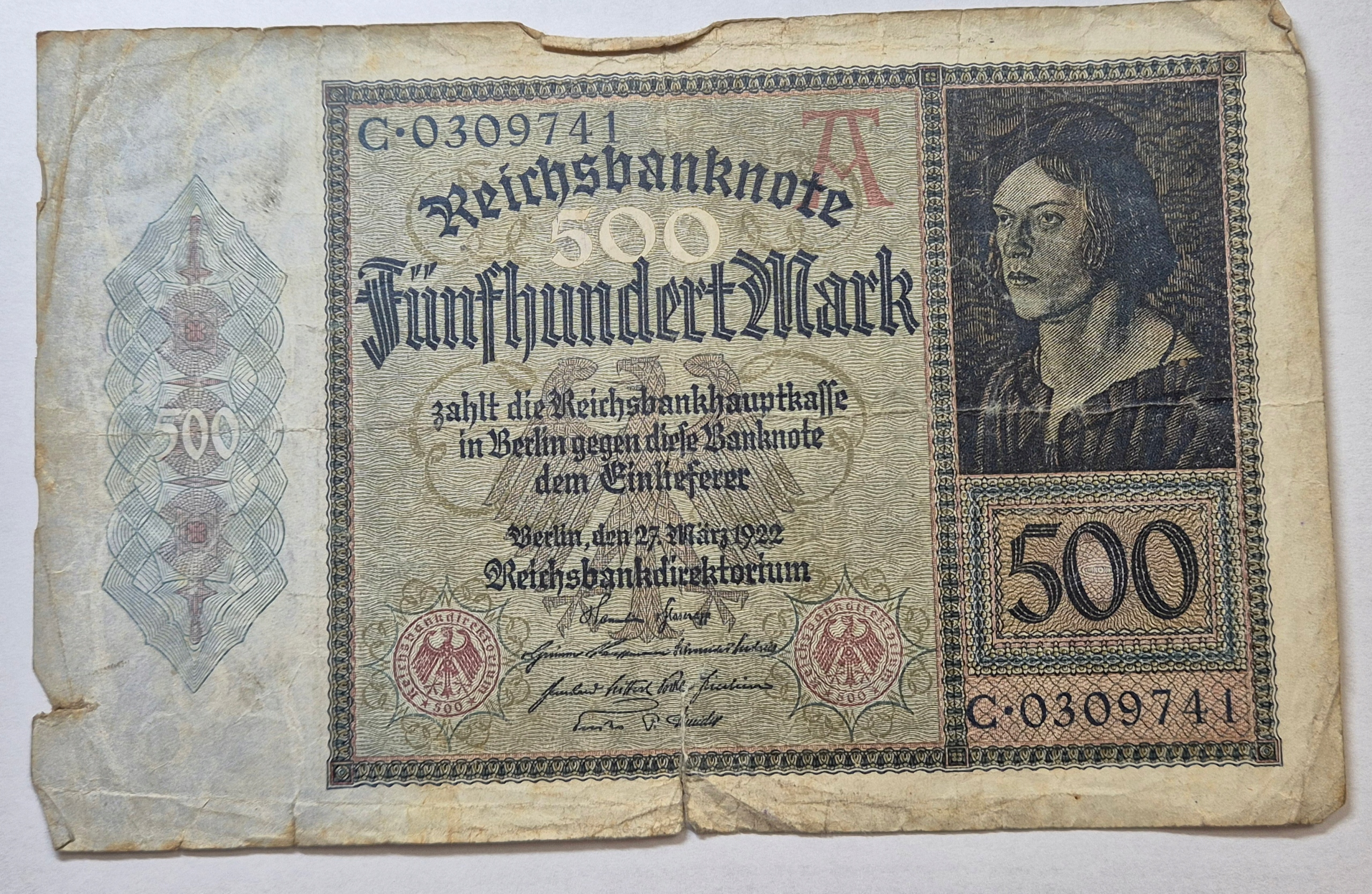 Німеччина банкнота 500 марок 1922 с. 694 величезний рідший