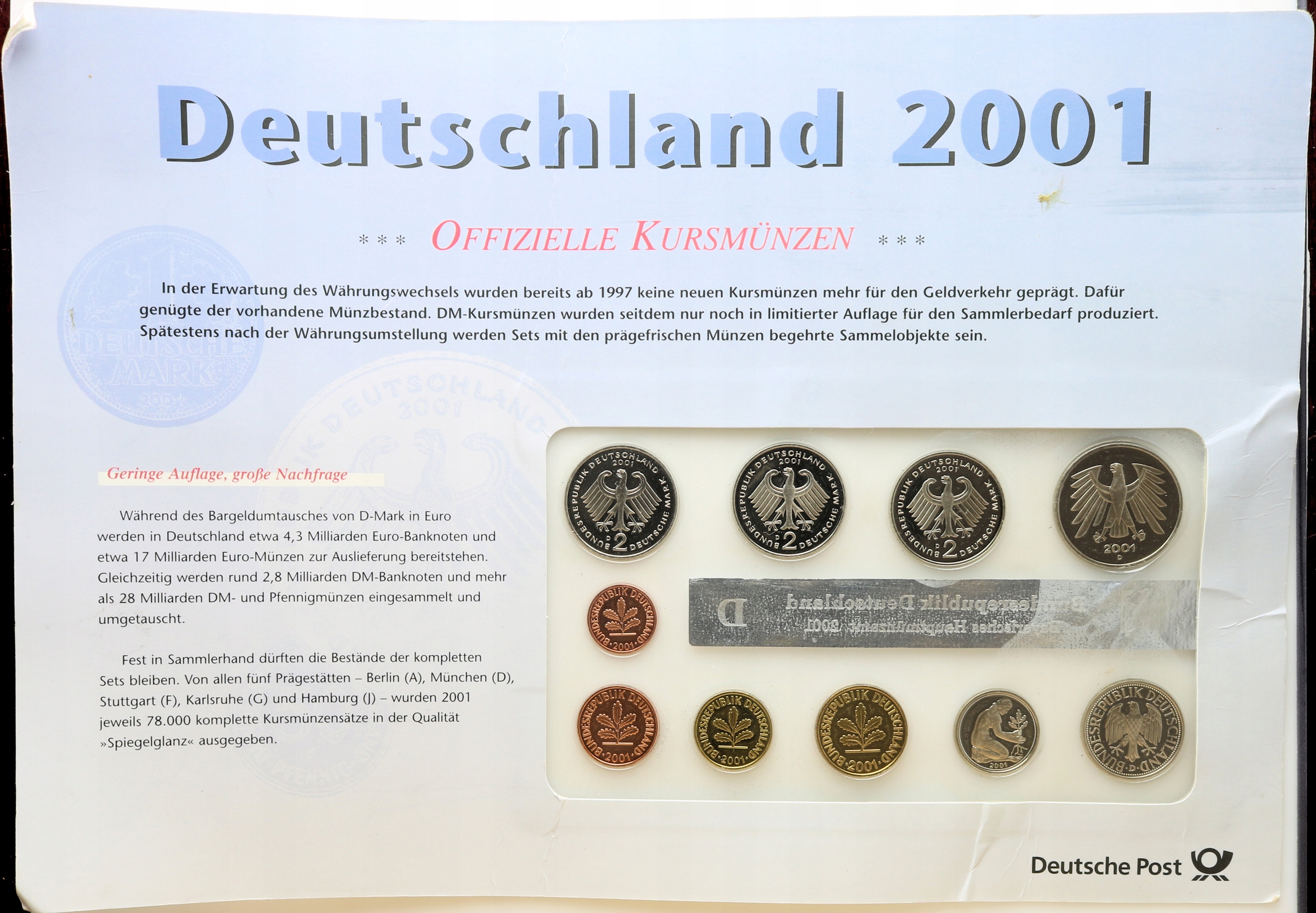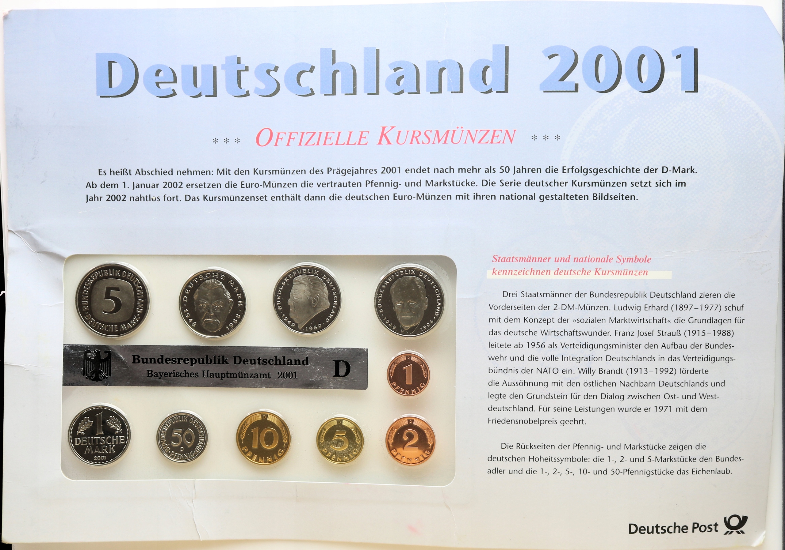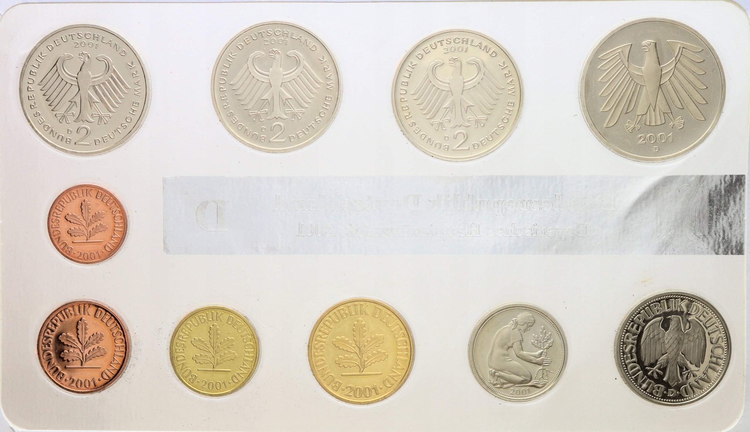Німеччина Вінтажний набір 2001 р. від 1 пфеніга до 5 марок чоловічий. D Мюнхенський доказ