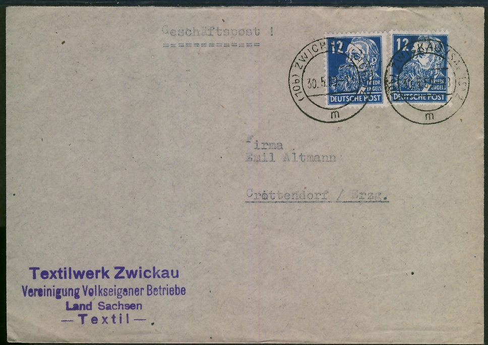 Німеччина зона 12 PF X 2 - Zwikauu - 1950