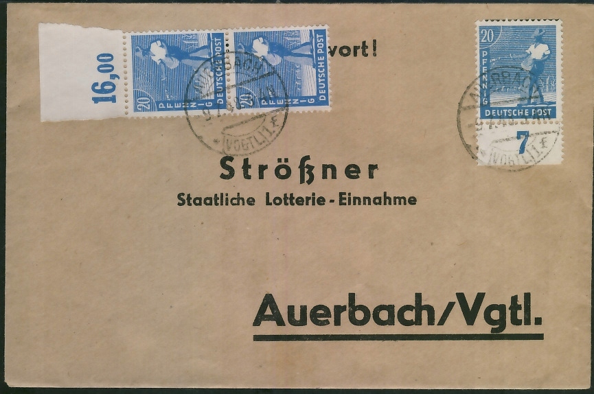 Німеччина Зона 20 pf. x 3 - Ауербах 1948