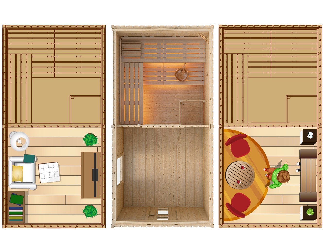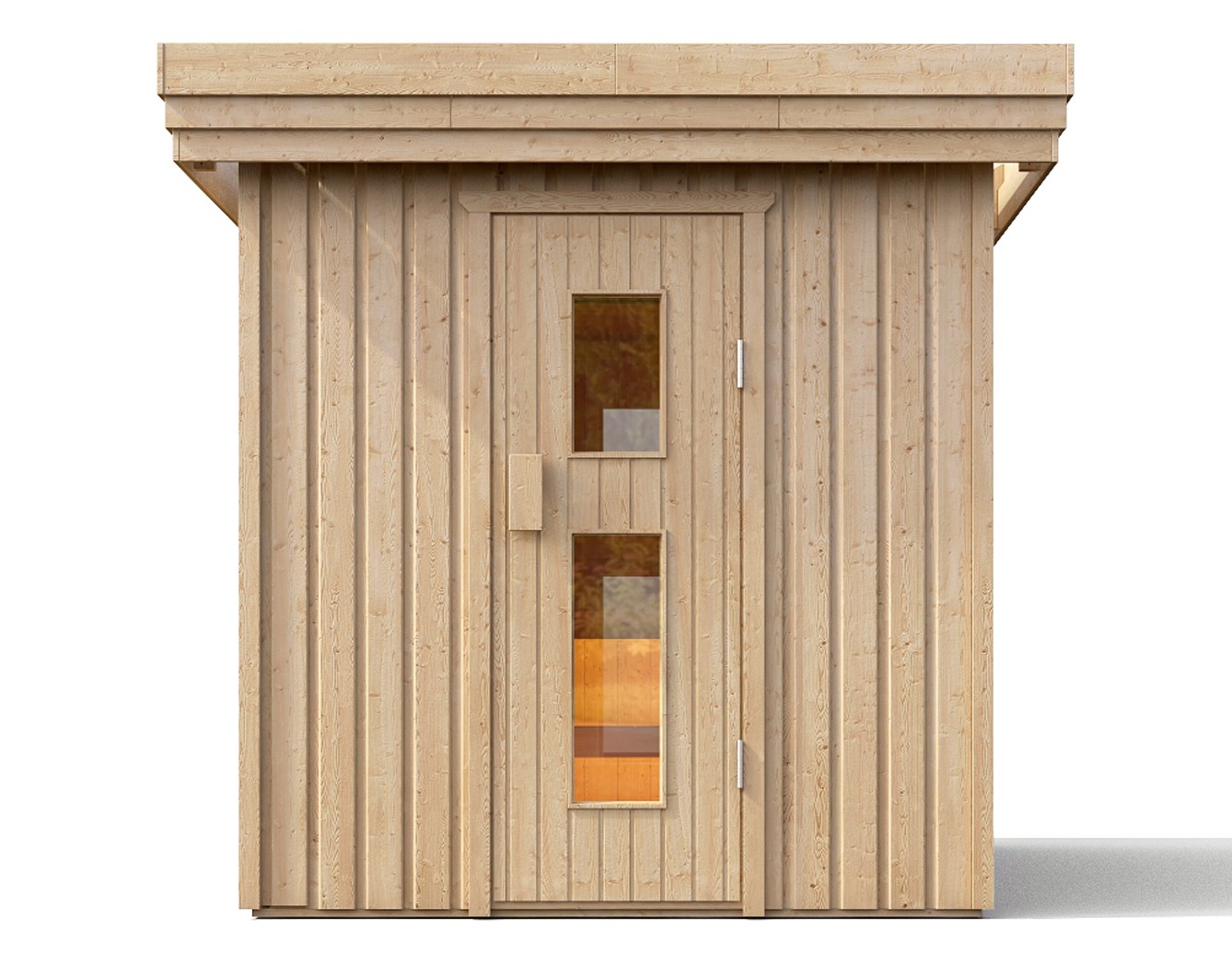 Садова сауна Fagus має теплоізольовану підлогу з ялини та 2 рівні сидіння з осики. Ви можете оформити тамбур з вікном від підлоги до стелі відповідно до ваших уподобань. Різноманітний дизайн віконних і дверних елементів дозволить вам визначитися, який вигляд він відкриватиме. Сучасний зовнішній вигляд сауни Fagus підкуповує конструкцією даху та стін з високоякісної ялини. Сучасний, триступеневий, привабливий дах також включає дощову ринву та водостічну трубу. Сподіваємось, вам сподобається позачасовий дизайн сауни Fagus!