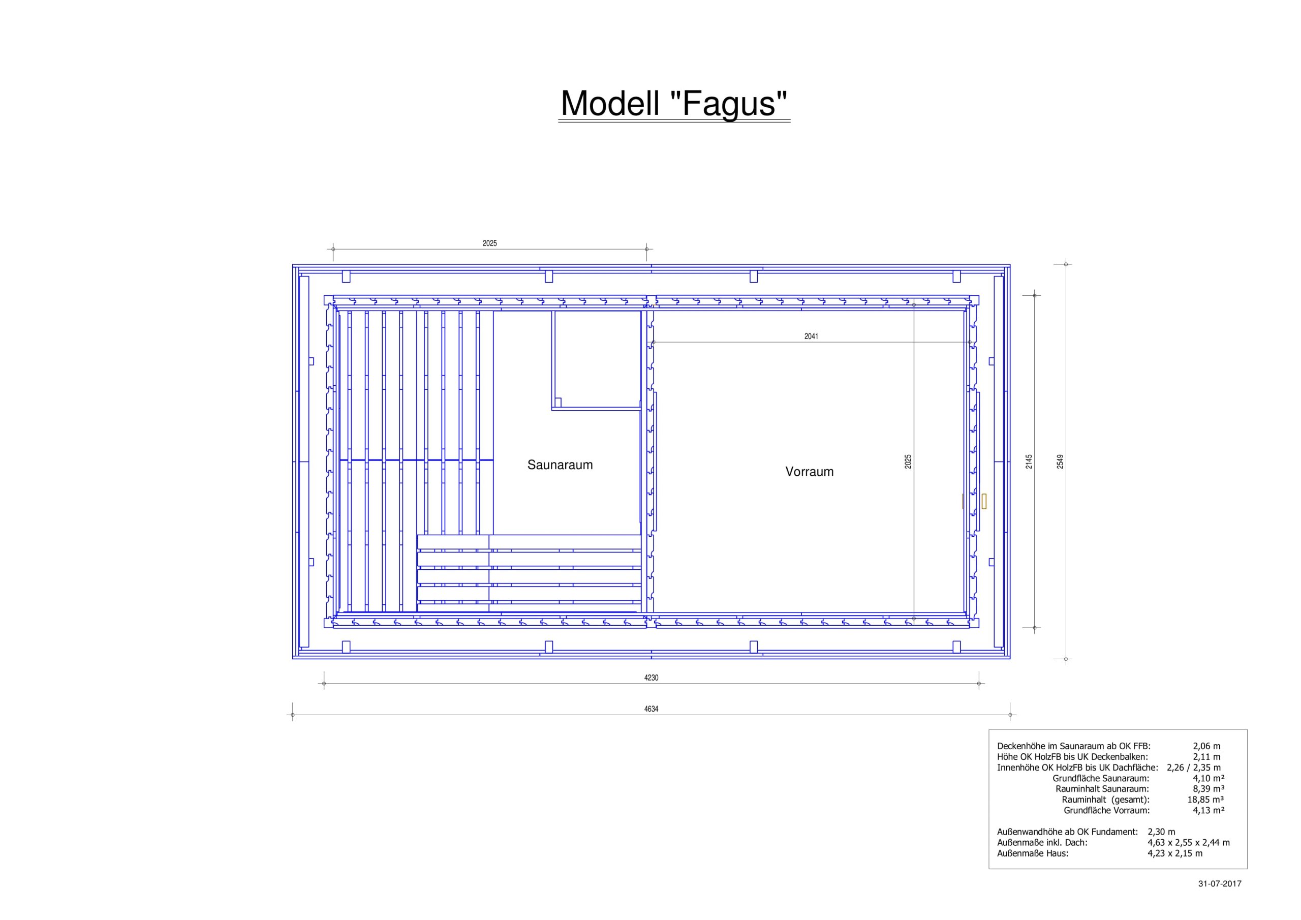 Фагус виготовляється з висушеної деревини скандинавської ялини, відомої за його відмінні властивості. Оксамитова блискуча деревина має жовто-білуватий колір з рівною структурою і невеликими слідами сучків. Сидіння сауни виготовляються з деревини осики, яка характеризується низькою теплопровідністю.