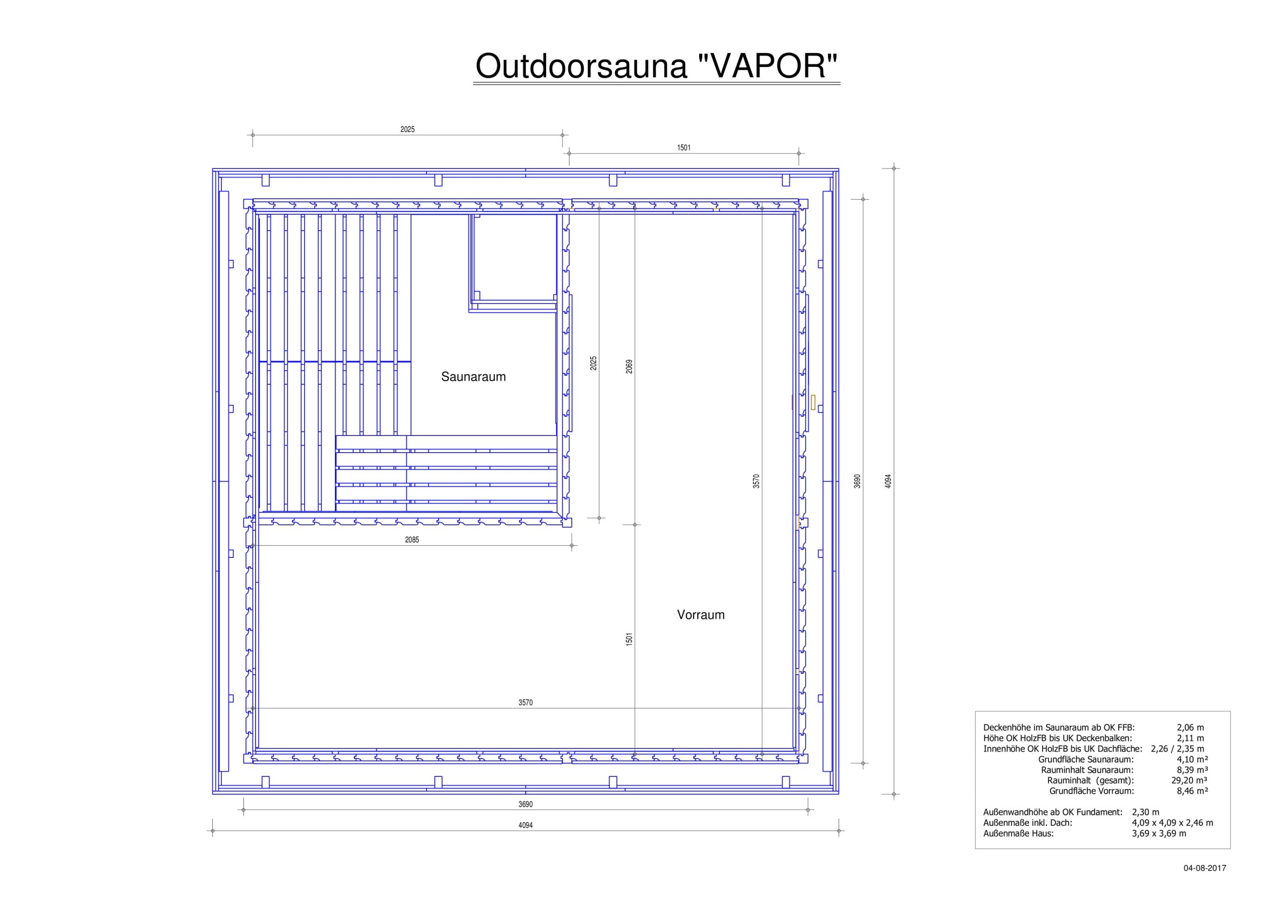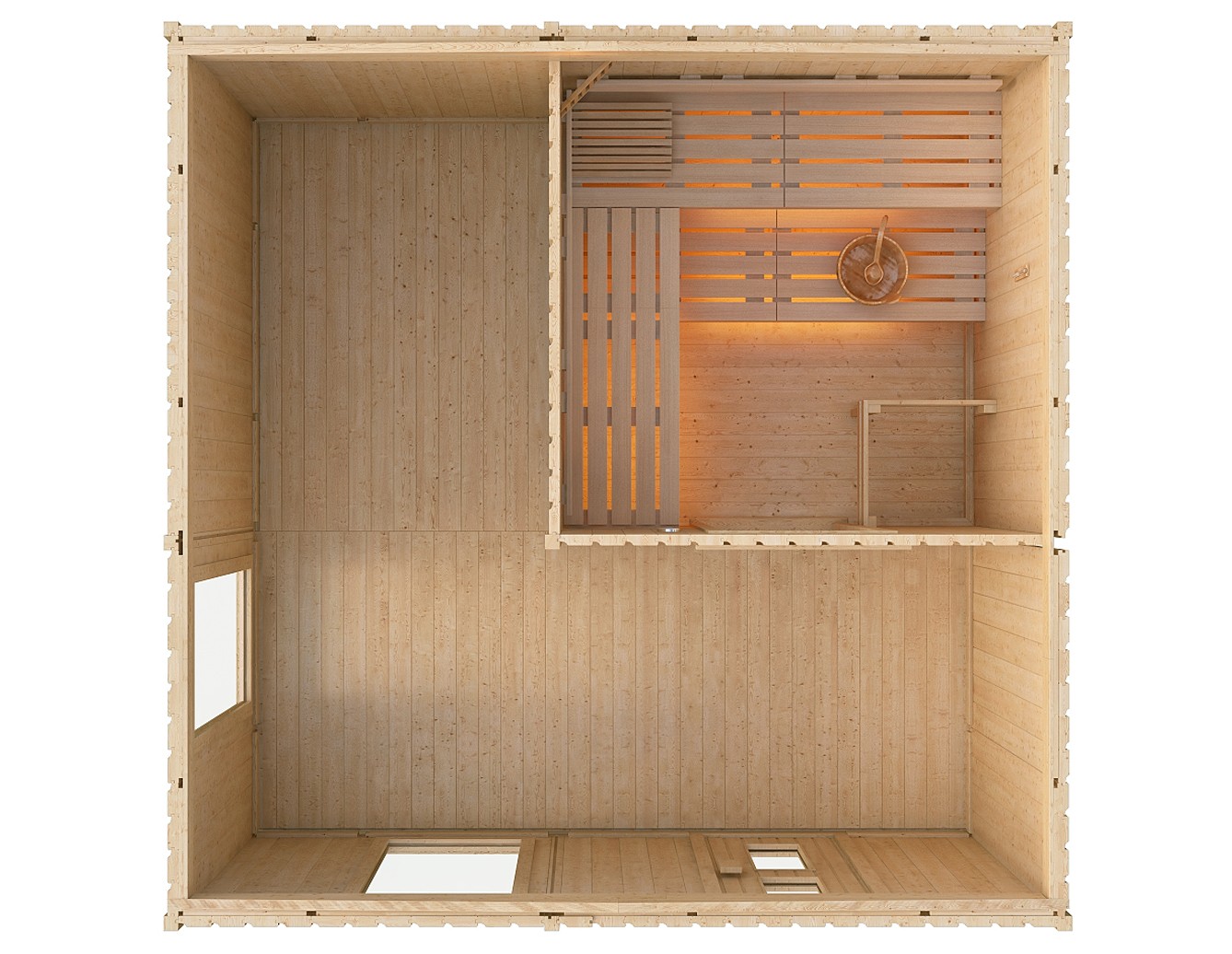 Сауна Vapor Garden пропонує все, що може забажати любитель сауни! Всередині два рівня сидінь з високоякісної осики. Просторий передпокій ви можете оформити відповідно до власних уподобань. У ньому достатньо місця для відпочинку між сеансами сауни. Стінки Vapor виготовлені з норвезької ялини товщиною 44 мм, а структура фасаду робить сауну окрасою саду, поєднуючи в собі дизайн і функціональність.Бажаємо вам приємного відпочинку!