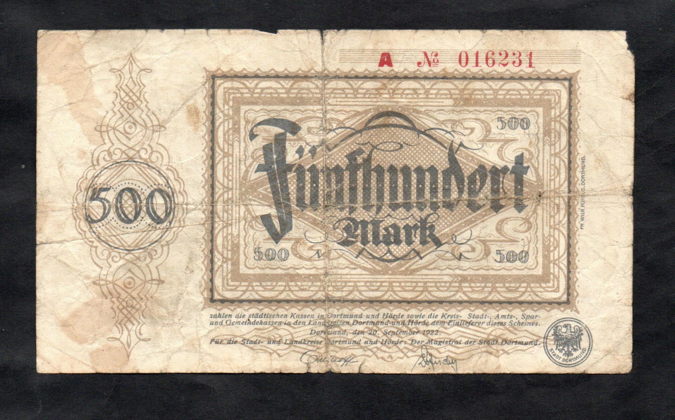 НІМЕЦЬКА КОЛЕКЦІЯ, ДОРТМУНД -- 500 МАРОК -- 1922 Р