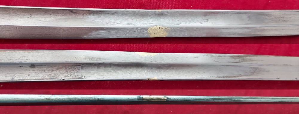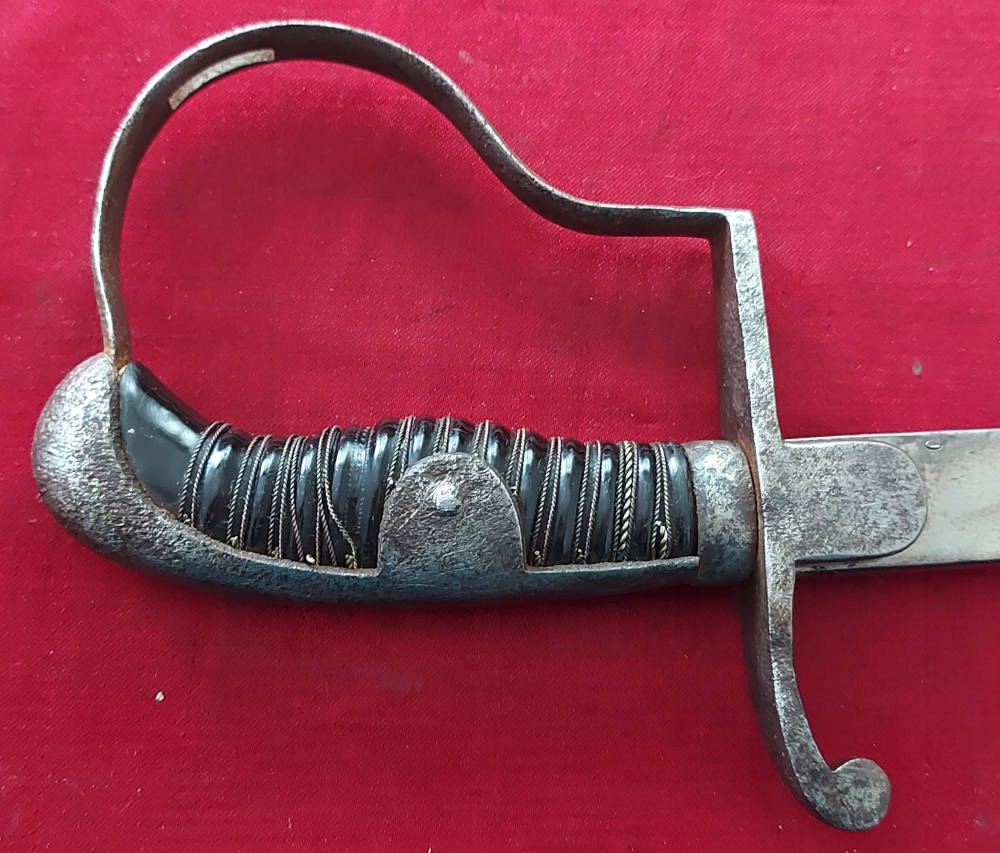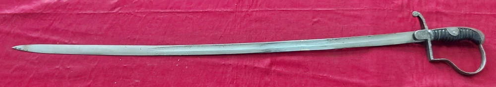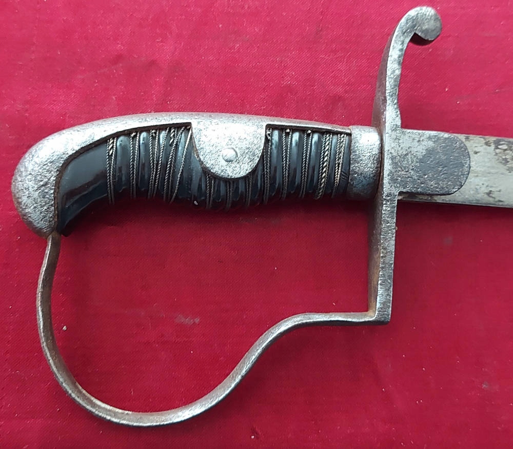 Копія, видна на фотографіях. Пошкоджене лезо має видимий реперторант. Крім того, місце дуже добре збережене, неминуче та неминуче. Збережено ~ 90% від початкового хрому. Світло ручки - сталь. Вал ручки покритий ебонітом, оригінальна коса зберігається, але вона має пошкодження. Шабля не була закрита, не є слабкої.