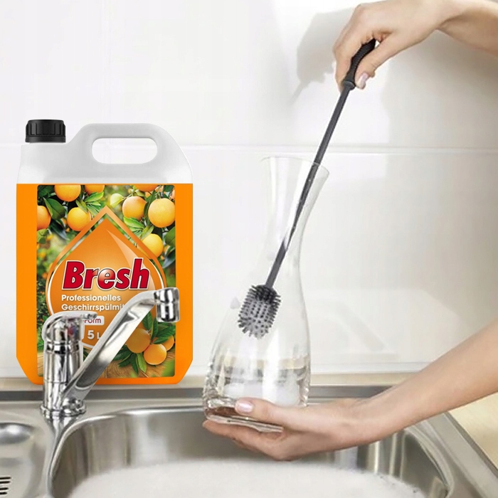 Засіб для миття посуду Bresh має дуже хороші миючі властивості та високу здатність емульгувати жири. Рідина не залишає розводів на вимитих поверхнях, надає їм блиск без необхідності витирати насухо.