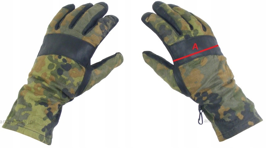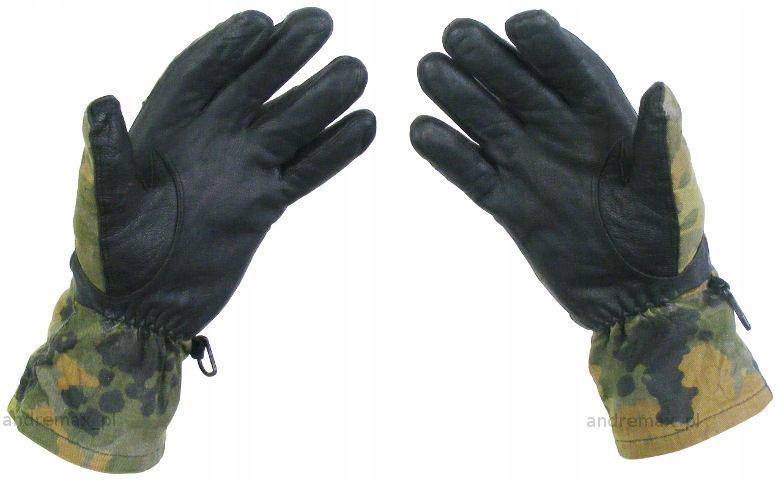 Військові рукавички BUNDESWEHR із камуфляжної мембрани Flecktarn. Матеріал рукавичок (мембрана) не пропускає воду, «дихаючи», тобто викидаючи зайве тепло (піт) за межі рукавичок.