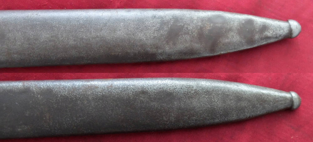 Піхви не мають отворів і мають невеликі вм'ятини. Направляюча піхви справна, клинок добре лягає в піхви.