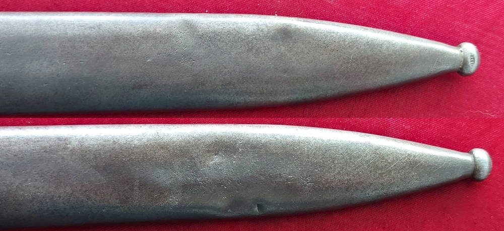 Піхви не мають дірок і дрібних вм'ятин. Знаки видно на вході. Waffennat видно на кулі. Направляюча піхви справна, клинок добре лягає в піхви.