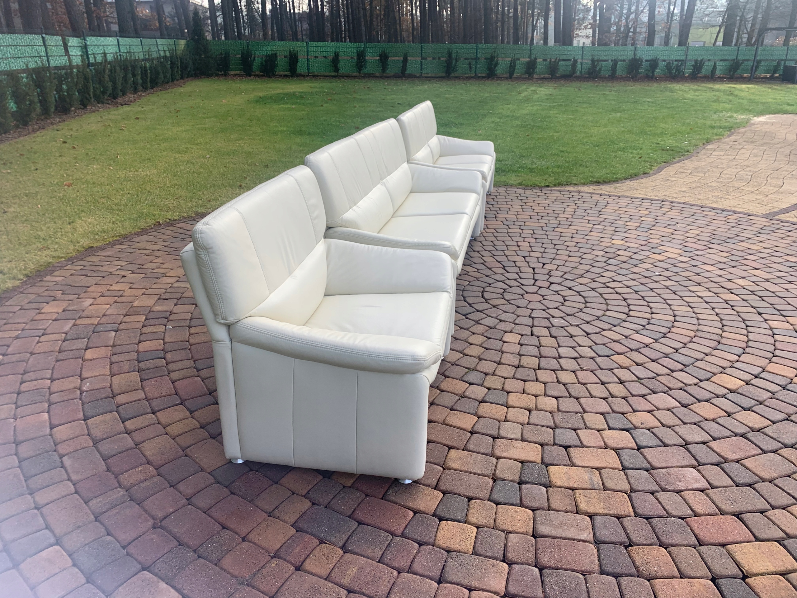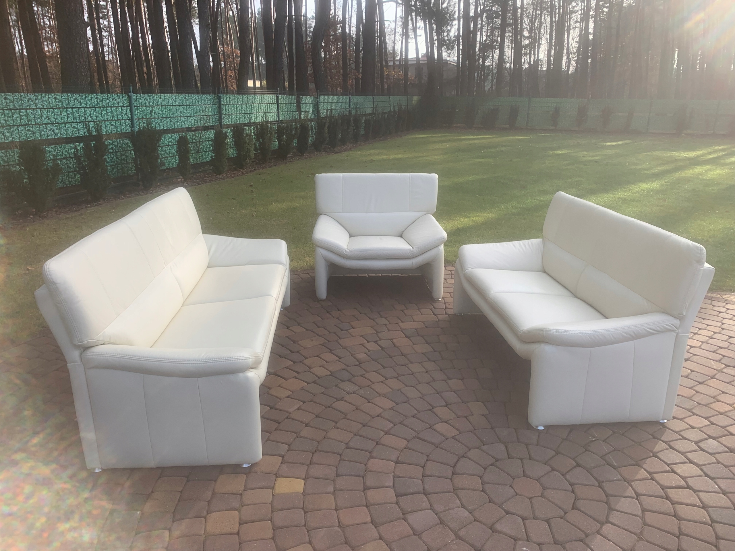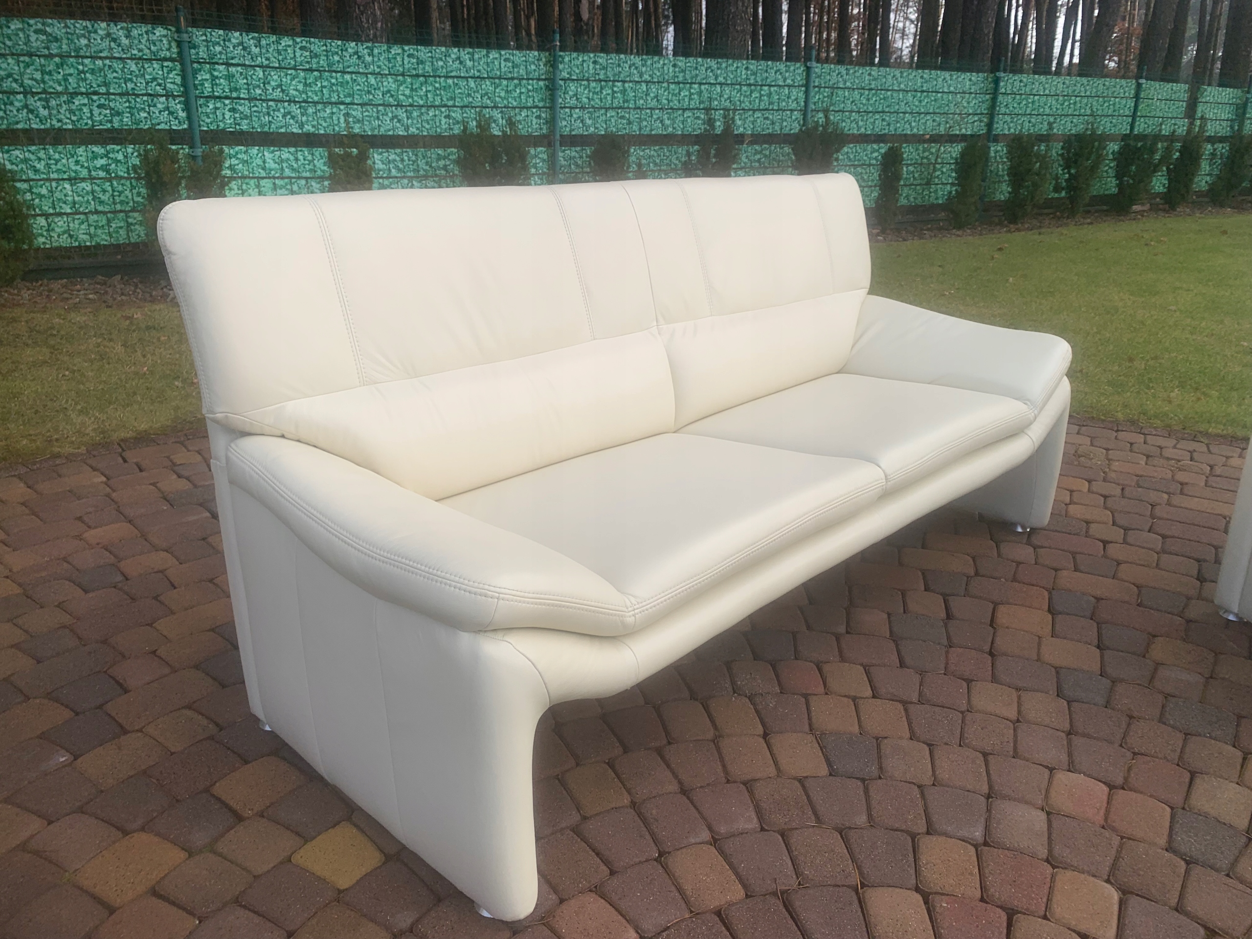Пропоную унікальний німецький шкіряний комплект від відомої німецької компанії Laauser Шкіра найвищої якості меблі в Німеччині, найдорожча, але і найшанованіша компанія з півдня Німеччини «Bayerische Qualitet». Комплект складається з 3-місного дивана і крісла екрю, виготовленого з дуже м'якої шкіри Longlife. Високий комфорт Комплект доповнюється великими розмірами та широкими м’якими підлокітниками та унікальним дизайном. Набір привезений з Німеччини і хоч був там недовго, стан дуже хороший, без дефектів і слідів використання. Ціна нового понад 10 000 євро. Він дуже великий, дуже зручний і не повторюється. На жаль, фотографії не відображають справжньої краси, комфорту та стилю цього комплекту, тому я запрошую вас побачити його особисто (Калети, Сілезьке воєводство).