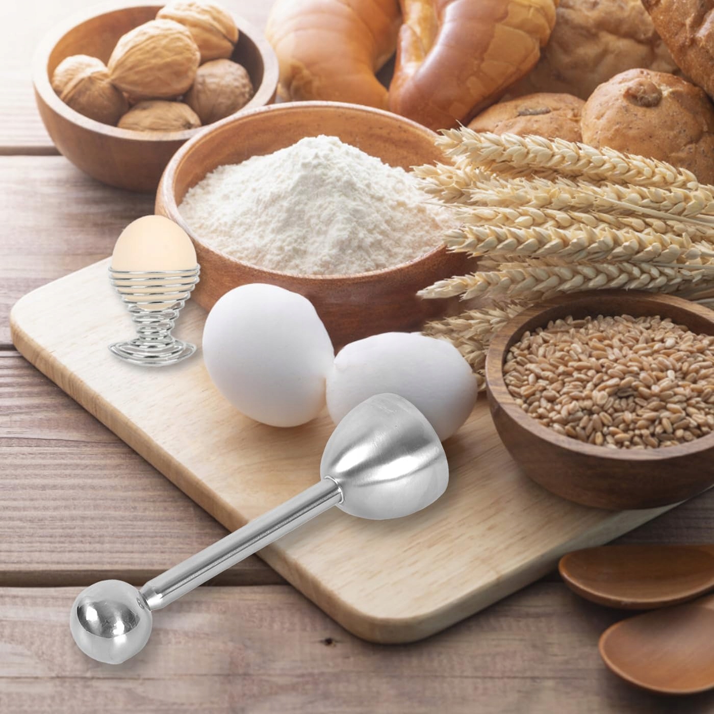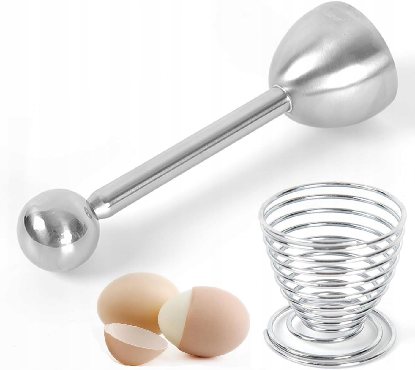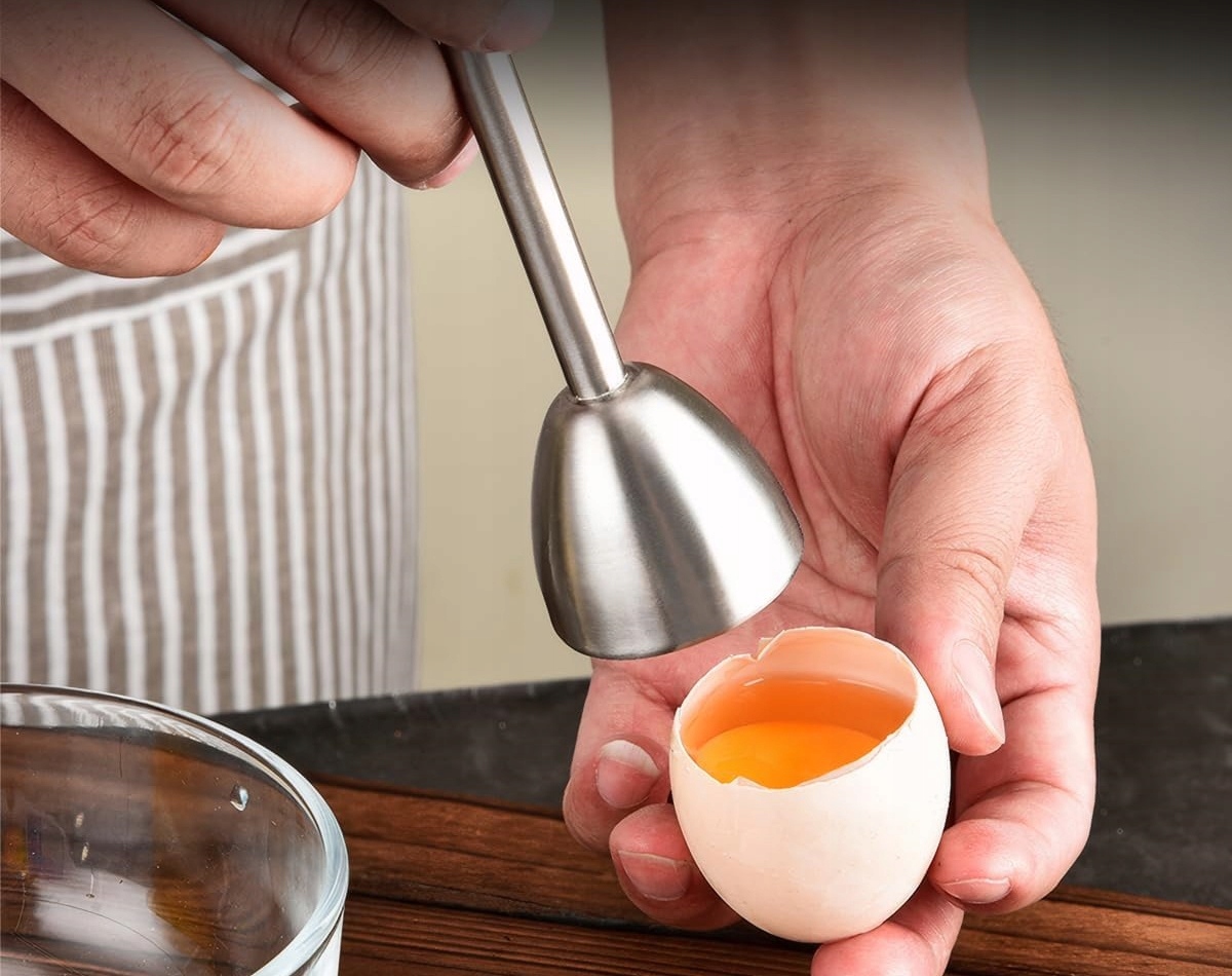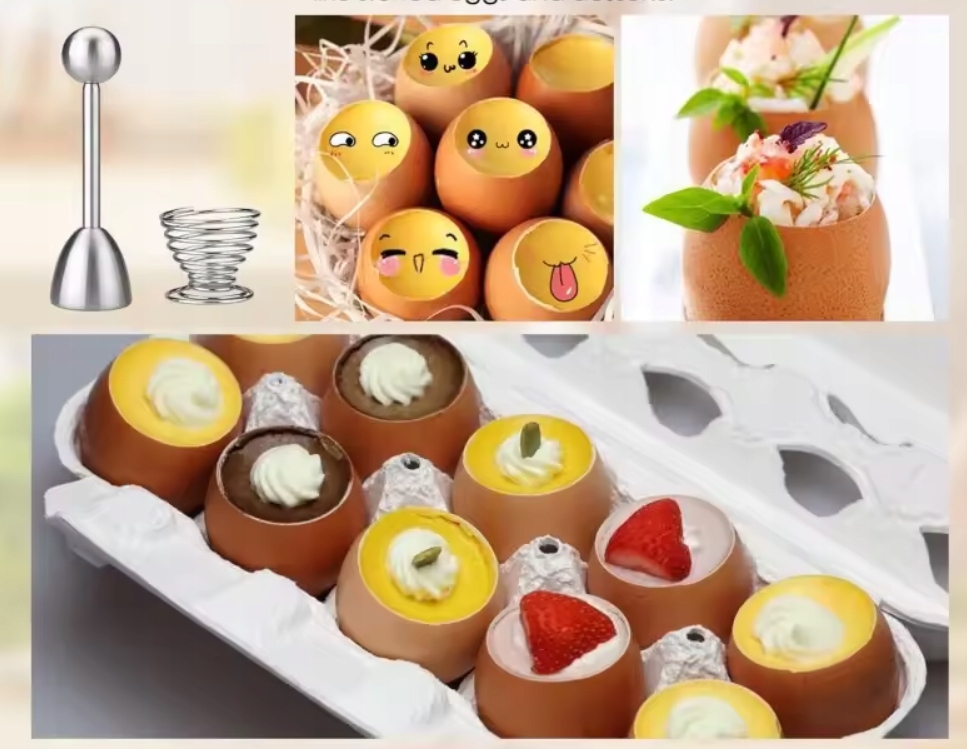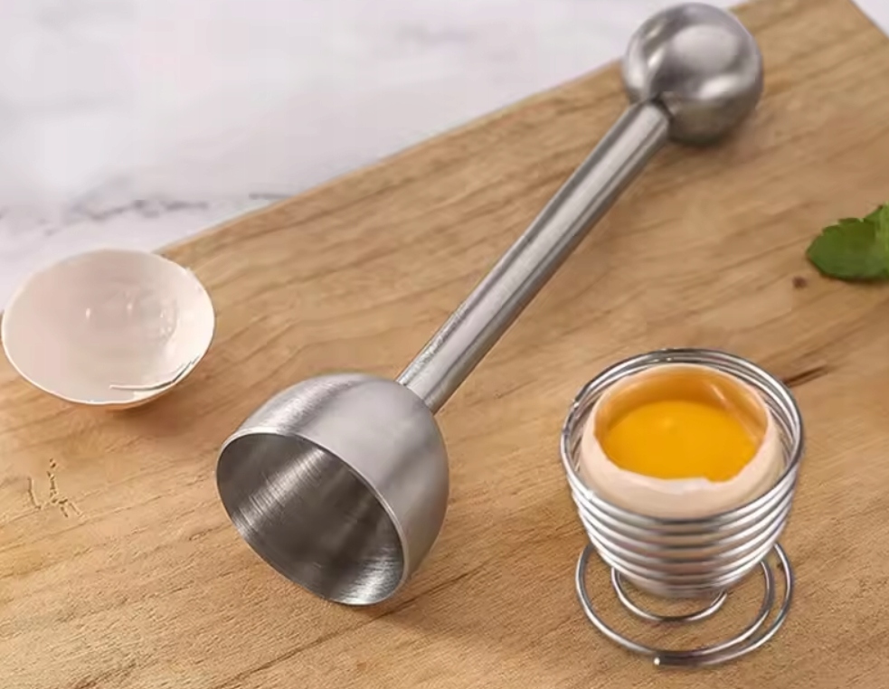2 відкривачки для яєць з нержавіючої сталі та лоток для яєць. Наша відкривачка для яєць не має гострих кутів і країв, це розумний кухонний гаджет.