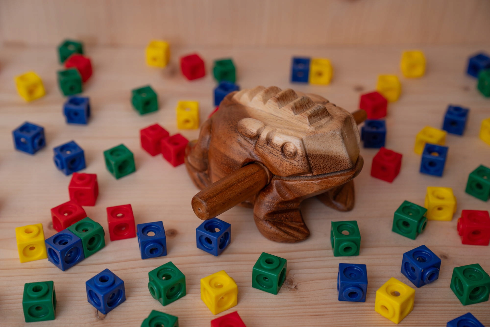 Ударний інструмент Wood Frog Güiro NINO® порожнистий і має ребристу задню частину, яка видає «риб’ячий» звук, якщо перетягнути по ньому скребком. Зовнішній вигляд інструменту робить гру з ним дуже веселою для дітей. Він створює теплий, м’який звук, який поєднується з іншими інструментами в класі, але діти можуть грати з ним будь-де вдома. Включає дерев’яний скребок.