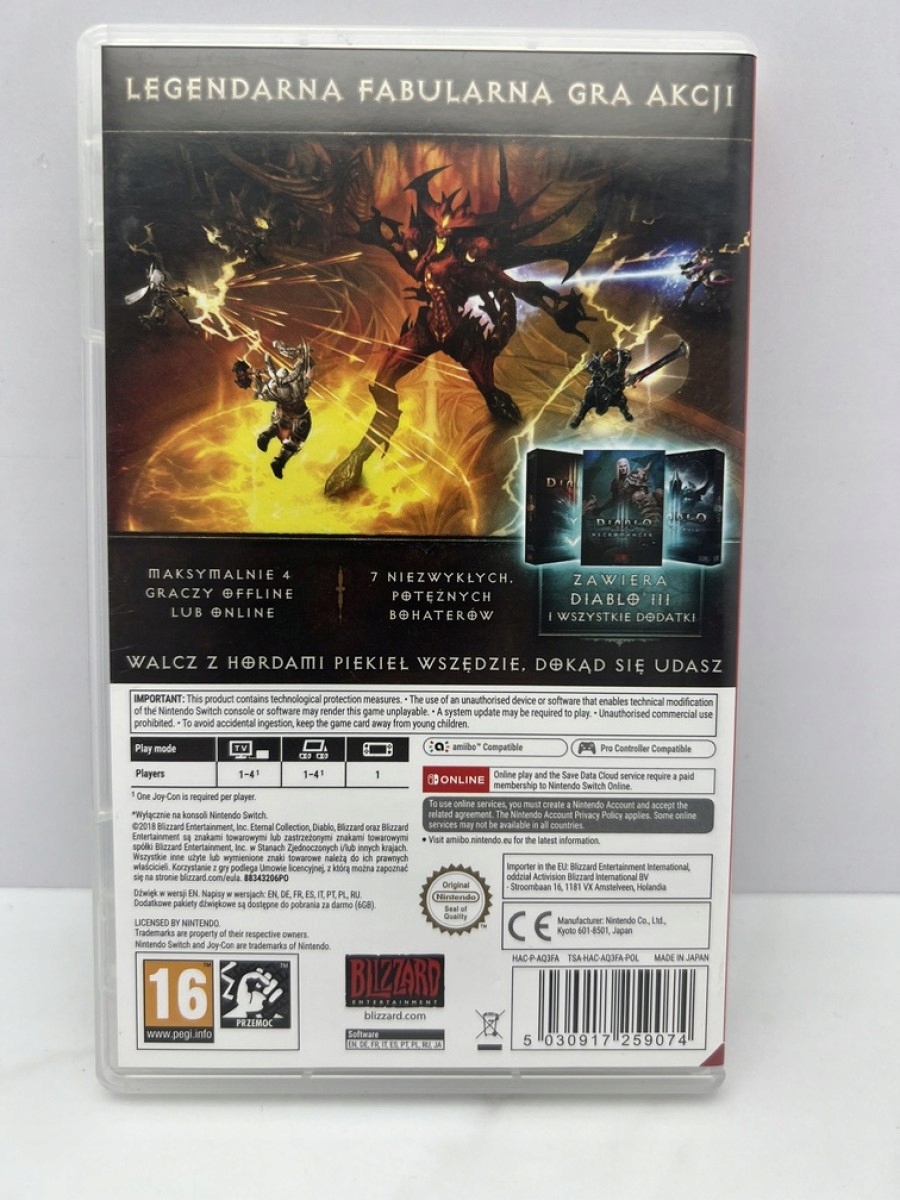 Оплачивая «Nintendo Switch Diablo III Eternal Collection Game», вы можете быть уверены, что данный товар из каталога «Nintendo Switch» будет доставлен из Польши и проверен на целостность. В цене товара, указанной на сайте, учтена доставка из Польши. Внимание!!! Товары для Евросоюза, согласно законодательству стран Евросоюза, могут отличаться упаковкой или наполнением.