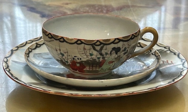 NIPPON KUTANI SYGNOWANA CIENKA PORCELANA JAPAN ANTYK HAND MADE 3 SZT