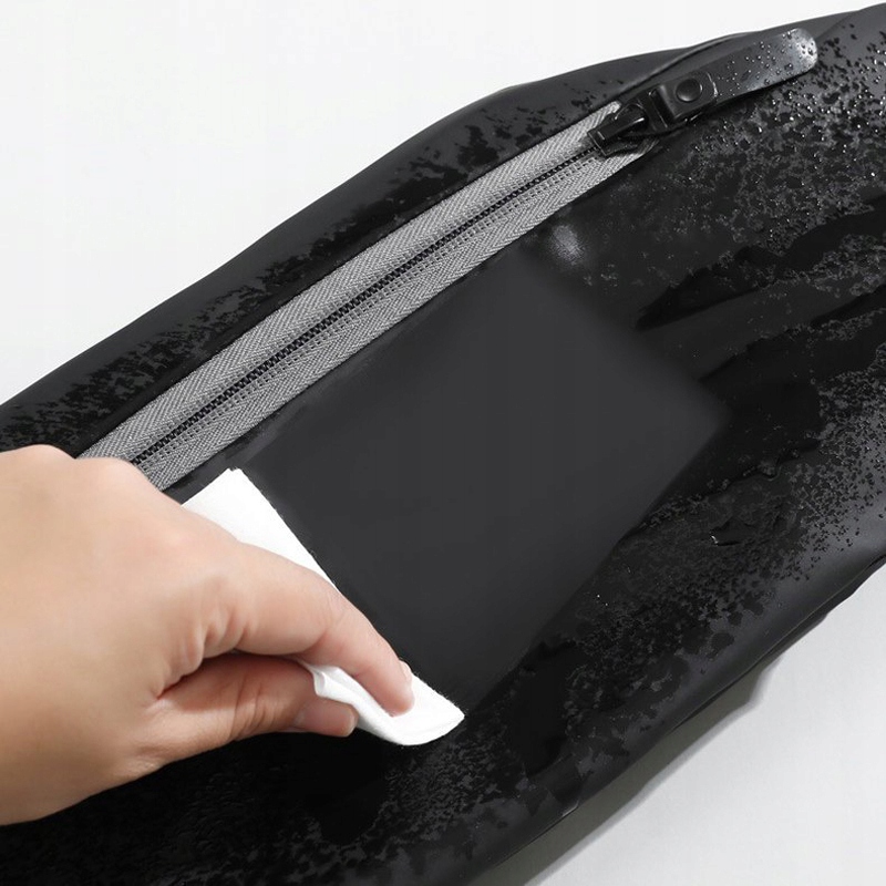 - Три кишенізакриваються на блискавку. Дві менші кишені з обох боків для менших аксесуарів і найбільша основна.