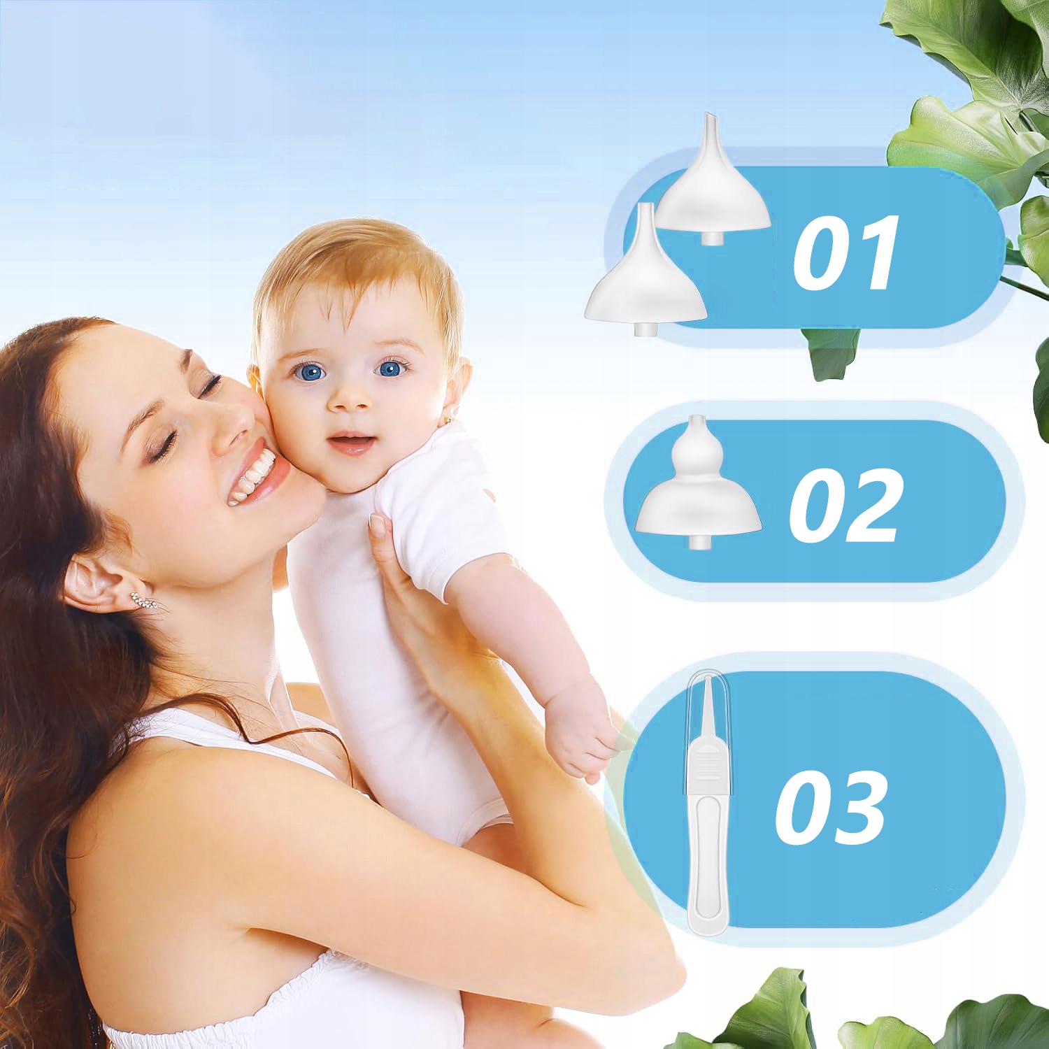 - Аспіратор носа для дітей оснащений 3 силіконовими кінчиками їжі, а м'який матеріал робить ніс аспіратором для дітей, ніжним для чутливої внутрішньої поверхні носа дитини.