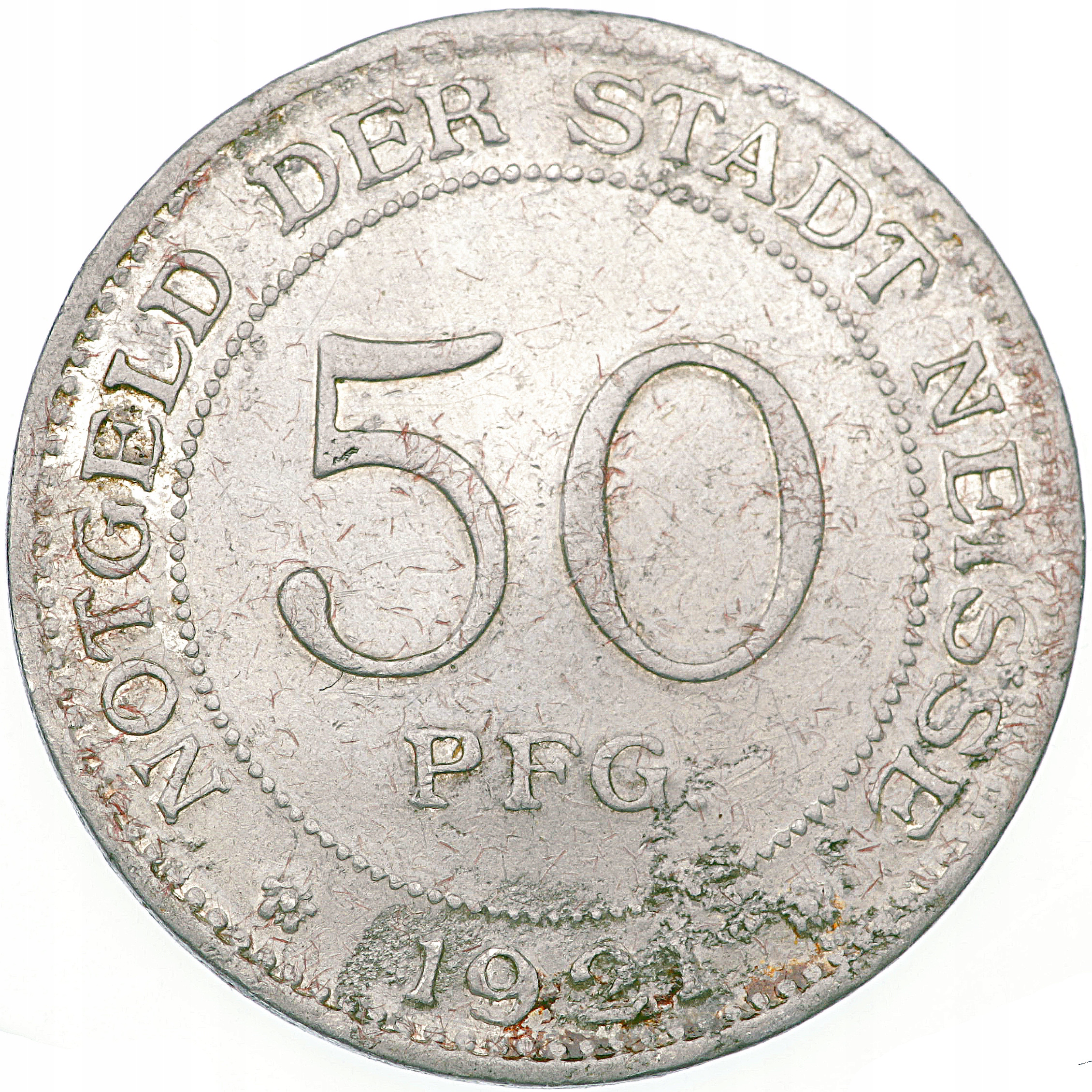 Nysa (Neisse), 50 пфенігів 1921 р., алюміній, 1,20 г, 24,0 мм. Питання міськради. Тираж: 4065 шт.