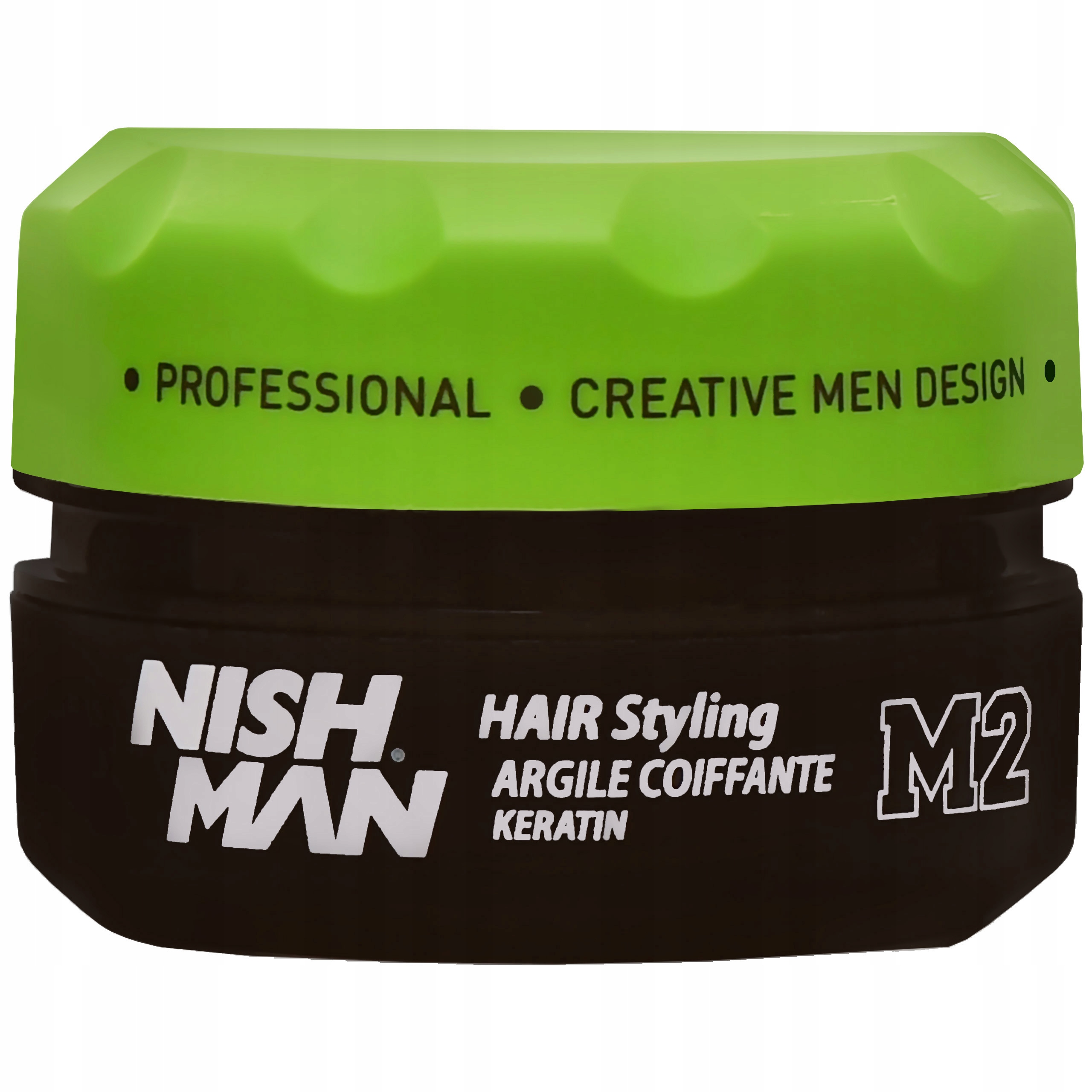 Nishman M2 матовий глиняний восковий кератин - унікальна помада, що містить kaolin , що допомагає досягти матового ефекту та гідролізованими кератином , відомим своїми регенераторними та зміцнюючими властивостями волосся. Завдяки наявності гліцерину , помада зволожує волосся, залишаючи його еластичним і легко влаштувати. А унікальний, Apple Artragrance робить програму задоволенням.