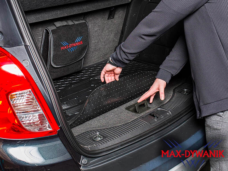 Додатковою перевагою пропонованого килимка є його унікальна гнучкість, завдяки якій під час використання ми все ще маємо доступ до простору під багажником (можливість підняти полицю для доступу до відділень для зберігання або запасне колесо) або витягнути килимок із багажника, щоб почистити його.