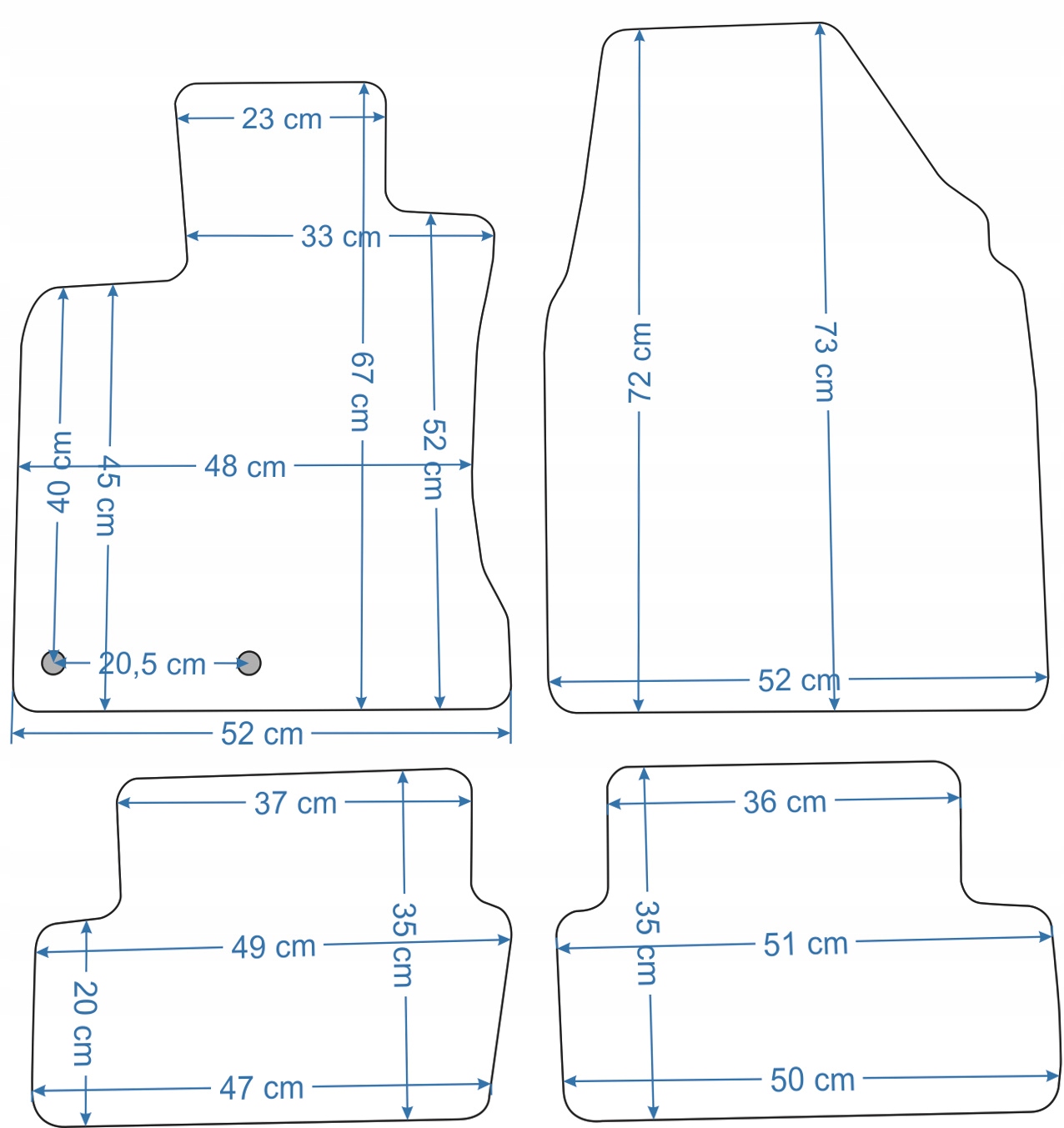 - Економ - петлевий килим, вага ворсу приблизно 500гр/м2, загальна вага приблизно 1600гр/м2, гранульований низ килима. Придбання цих килимків рекомендовано клієнтам, які рідко користуються автомобілем або хочуть освіжити автомобіль перед продажем.