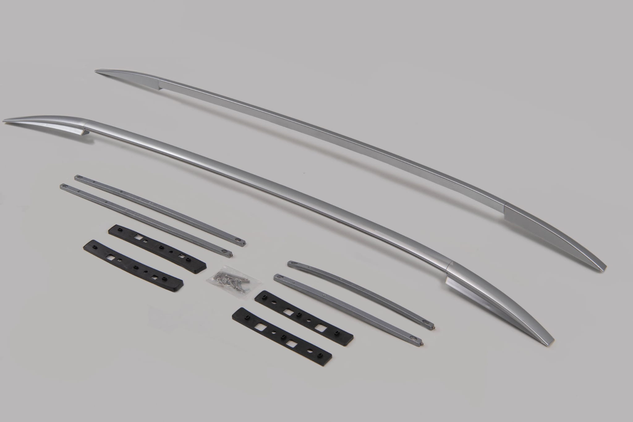 Виріб виготовлено з високоякісного алюмінію та ABS пластику. У комплект входить набір рейлінгів для лівої та правої сторін. Перила монтуються на заводі за допомогою кріпильних елементів, що входять у комплект.