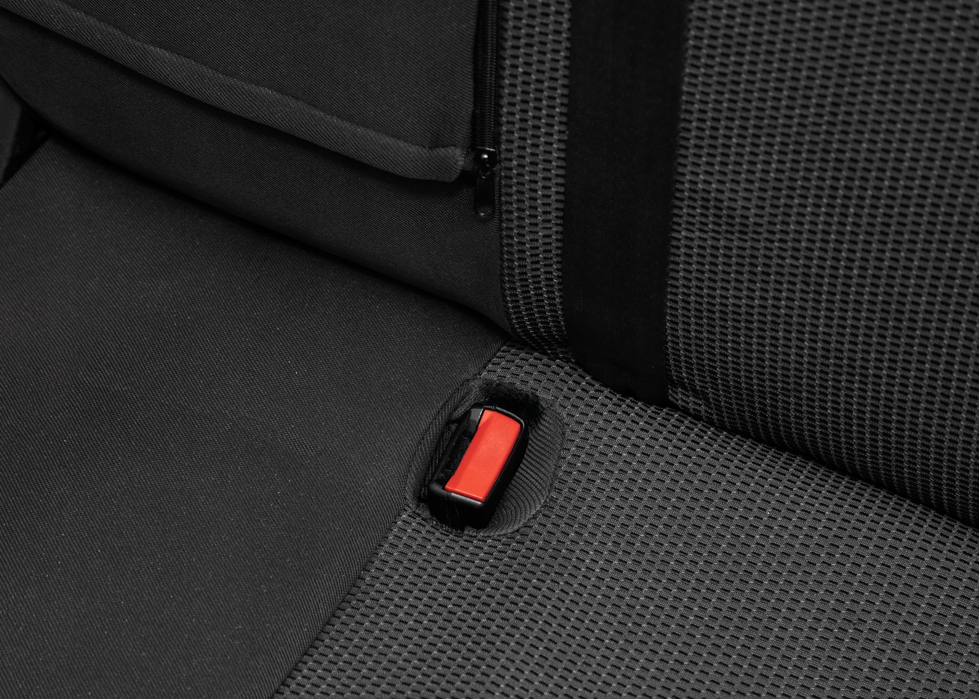 Завдяки використанню спеціального шва, на місці подушок, матеріал повністю охоплює сидіння, без втручання у роботу подушки безпеки .