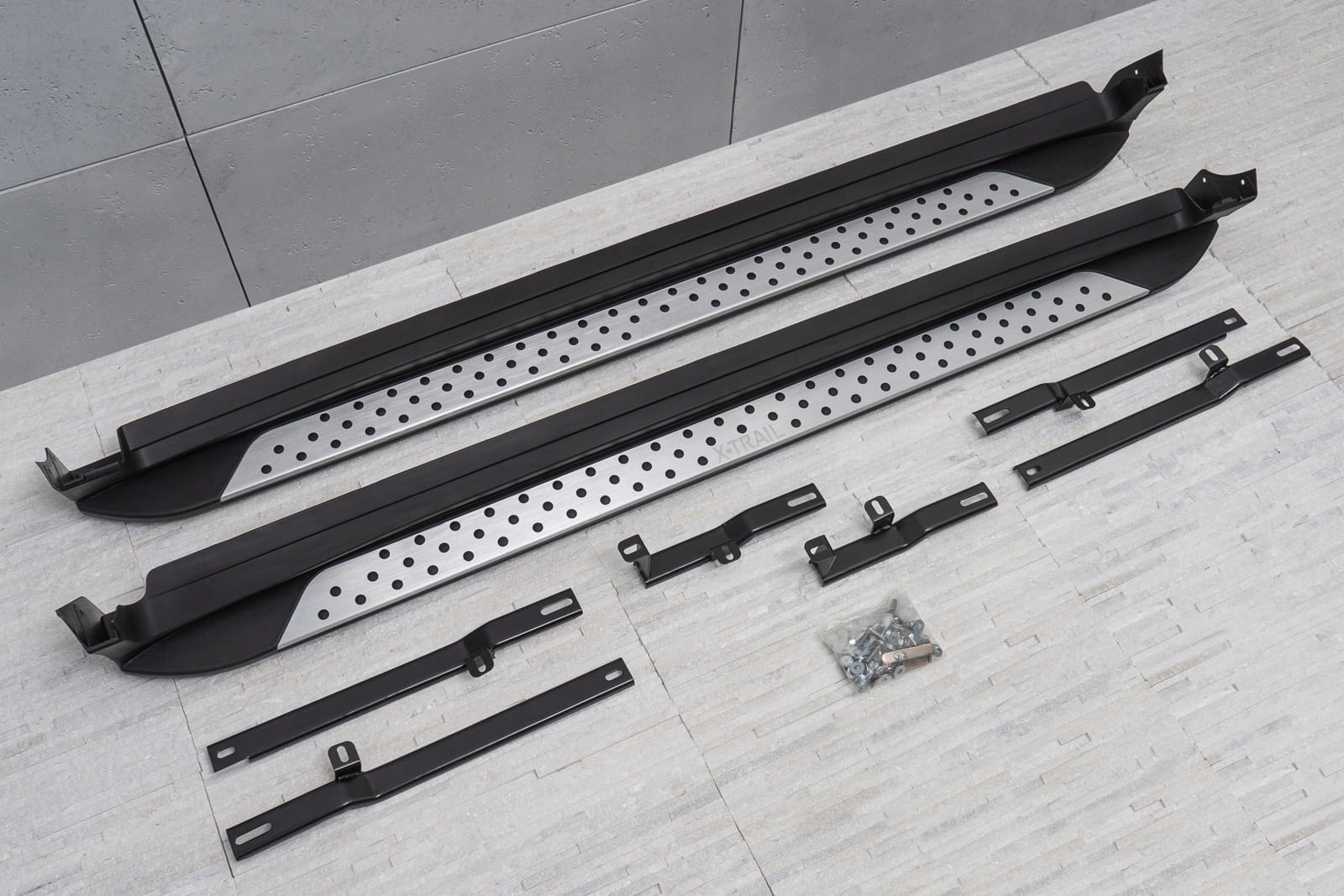 Встановлення кроків не вимагає буріння додаткових отворів, що дозволяє підтримувати оригінальні точки складання та гарантує неінвазивну збірку. Набір включає набір бічних кроків (права та ліворуч), монтажні елементи та інструкції. Однак ми рекомендуємо професійну збірку в семінарі ( ми знаємо з досвіду, що найкраще використовувати послуги фарби або кузова, оскільки ці рослини найчастіше займаються складанням рейк, доповнень та ступенів, тому збірка для цих рослин інтуїтивна активність ).