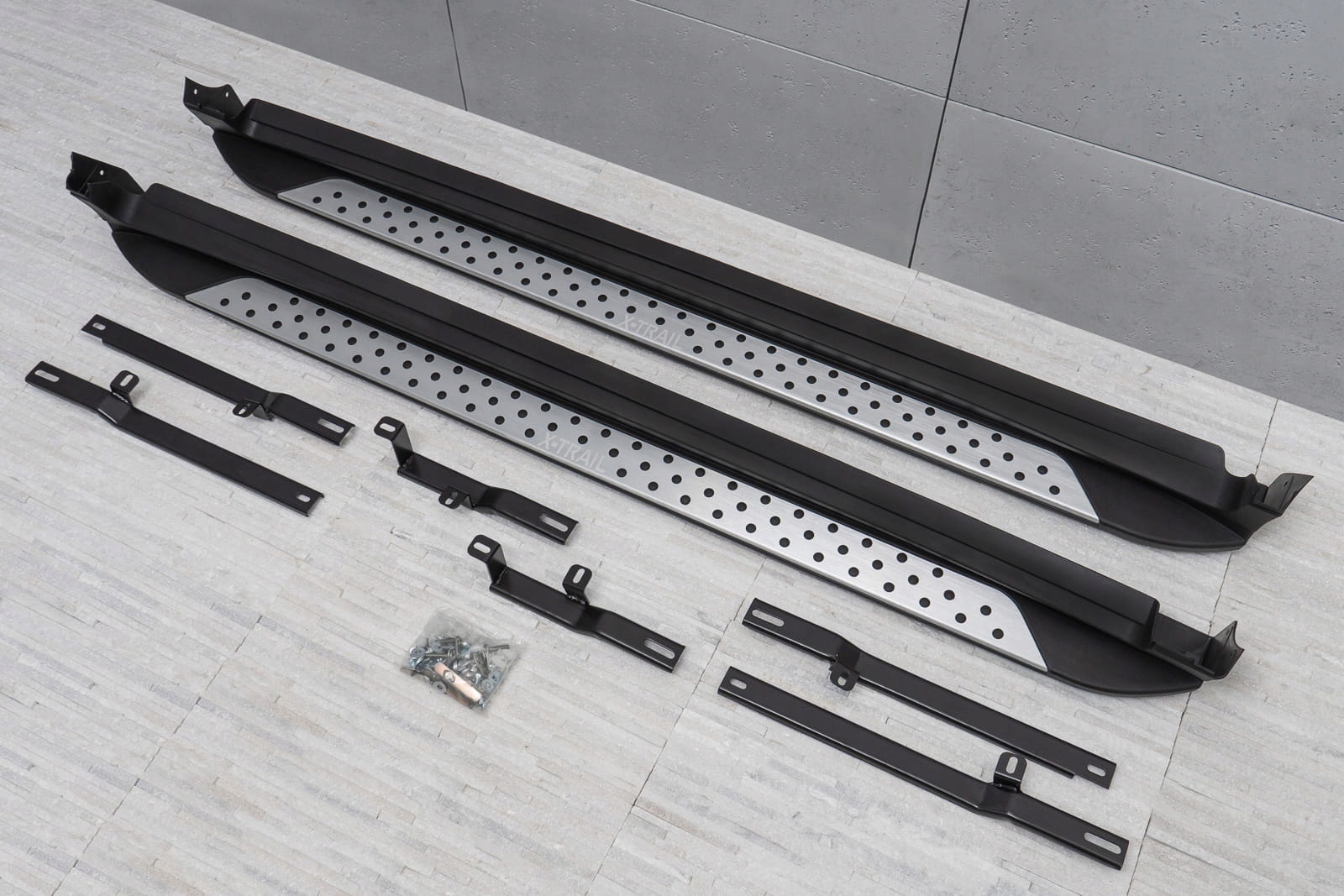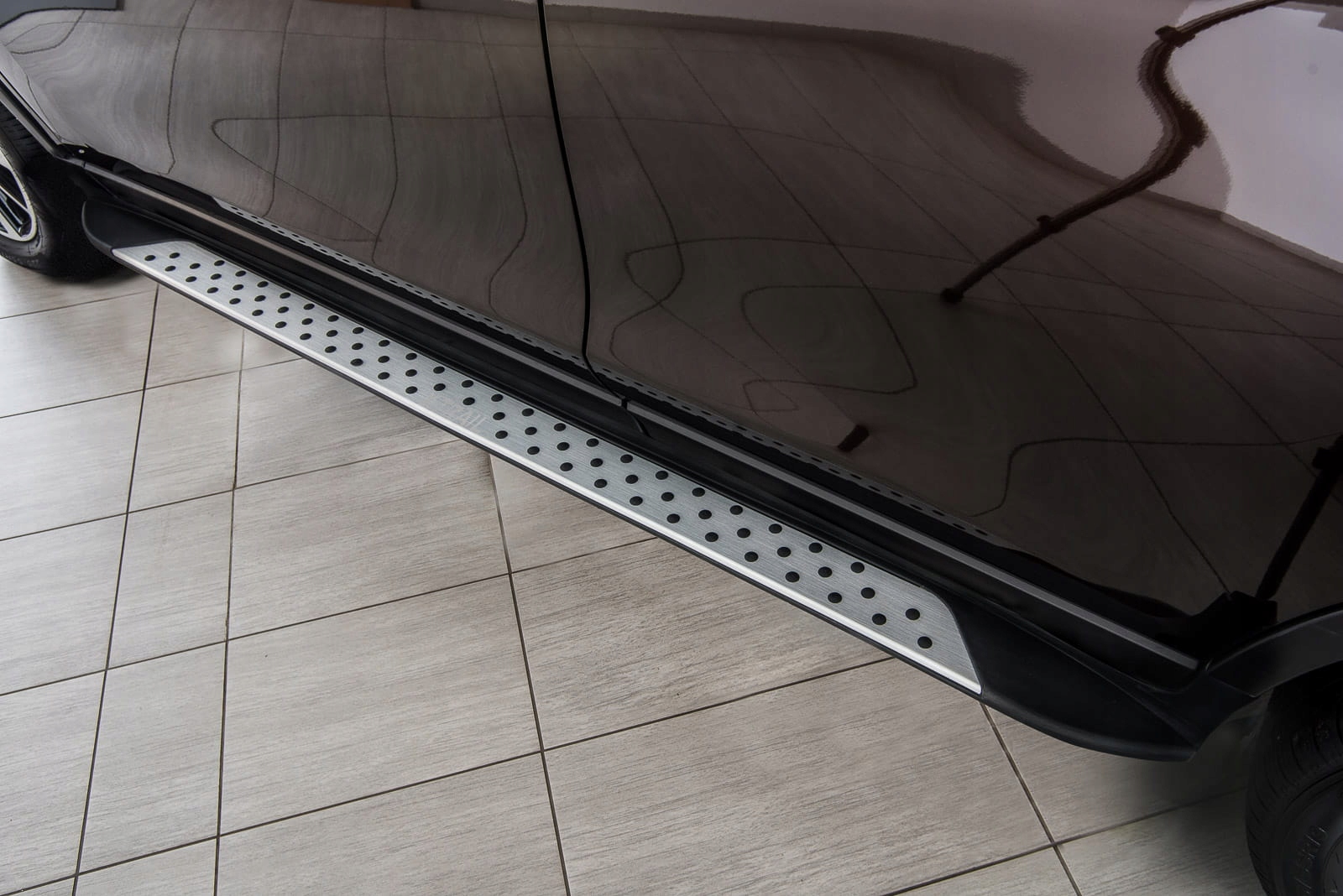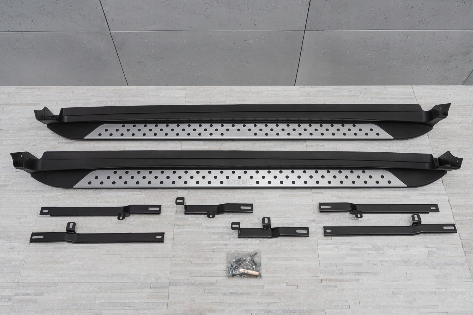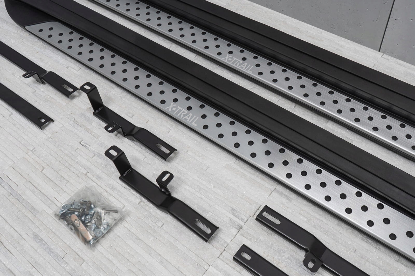 Сторони автомобіля для Nissan X-Trail-ідеальне рішення для людей, які цінують комфорт та зручність. Виготовлені з високоякісного алюмінію та автомобільного матеріалу ABS, вони забезпечують не лише елегантний вигляд, але й стійкість до погодних умов. Завдяки цьому бічні кроки міцні та довговічні, і в той же час зберігають свою зовнішність довго. Бічні кроки збільшують комфорт вмикання та вимкнення, що особливо корисно для дітей, людей похилого віку або з обмеженнями руху, а також дозволяє зайняти більш зручне робоче положення при розміщенні навантаження на дах автомобіля. вантажопідйомність 160 кг гарантує, що бічні кроки витримуватимуть набагато більше, ніж стандартне навантаження.
