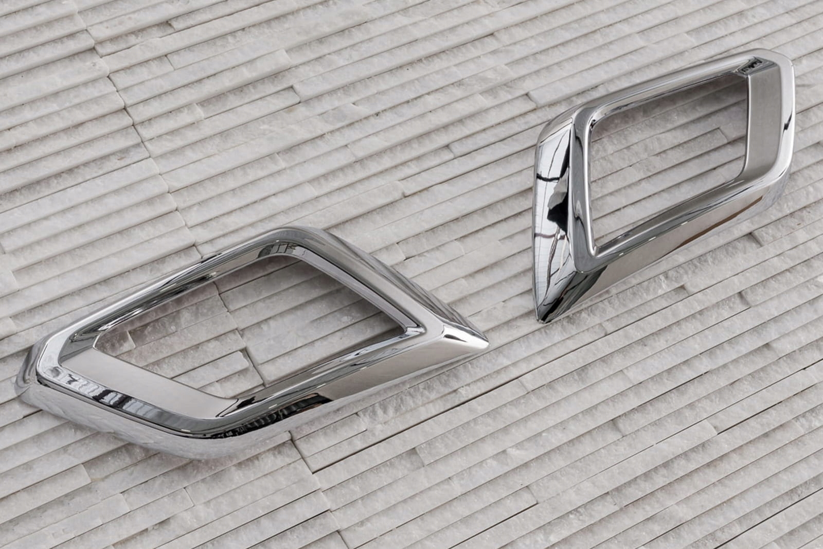 Стильні обкладинки підкреслюють форму галогенів. Поєднання дзеркального блиску Shrome з динамічною лінією накладання означає, що туманні фари набирають стильну, елегантну обстановку, ідеально відповідають характерному, спортивному стилю X-Trail. Вони додають візуальні глибини, що робить їх справжньою прикрасою фронту автомобіля. Смуги ідеально поєднуються з іншими елементами Nissan Finish, завдяки яким їх використання дозволяє отримати цілісний, виразний стильний автомобіль.