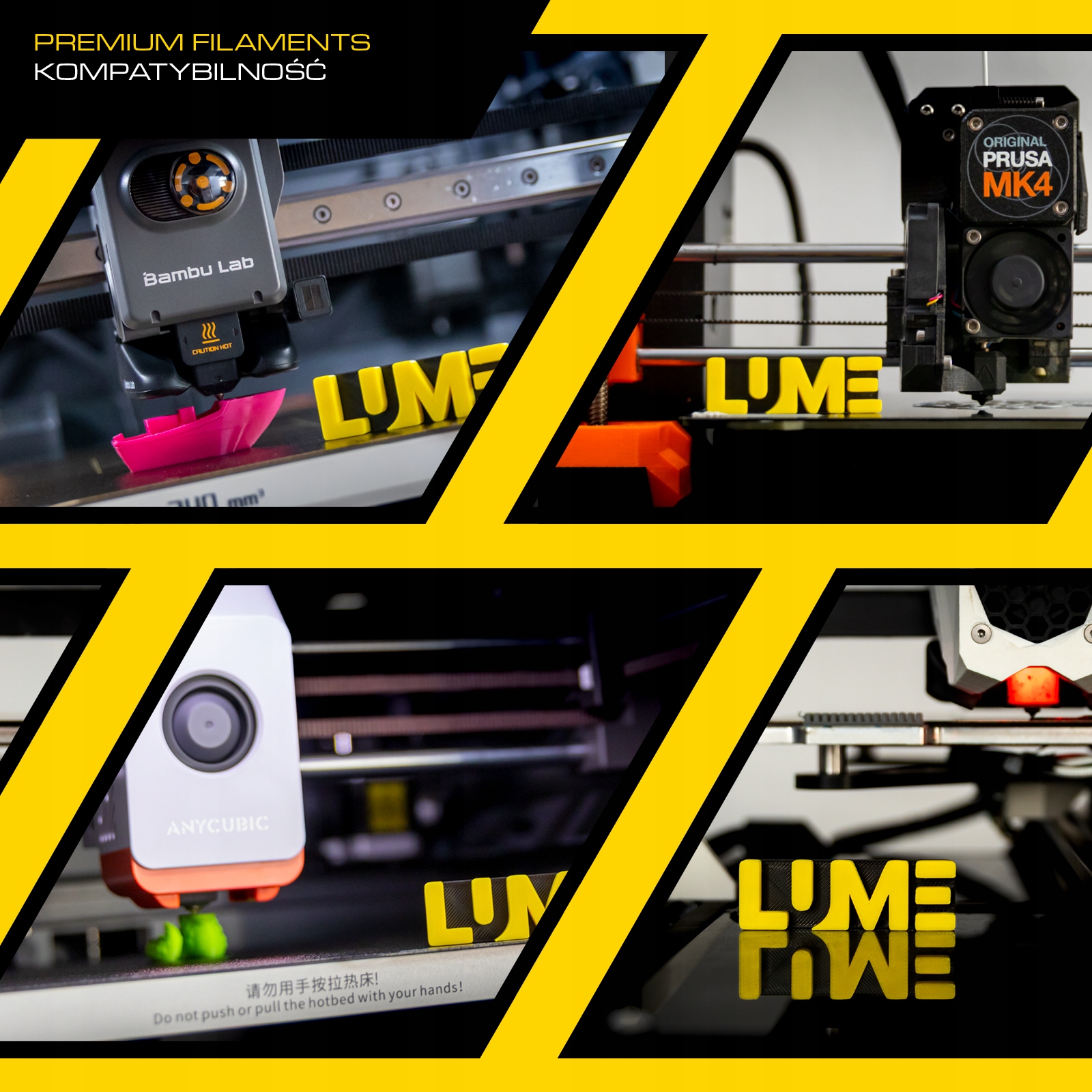 Усі нитки марки LUME Filaments сумісні з такими системами, як: