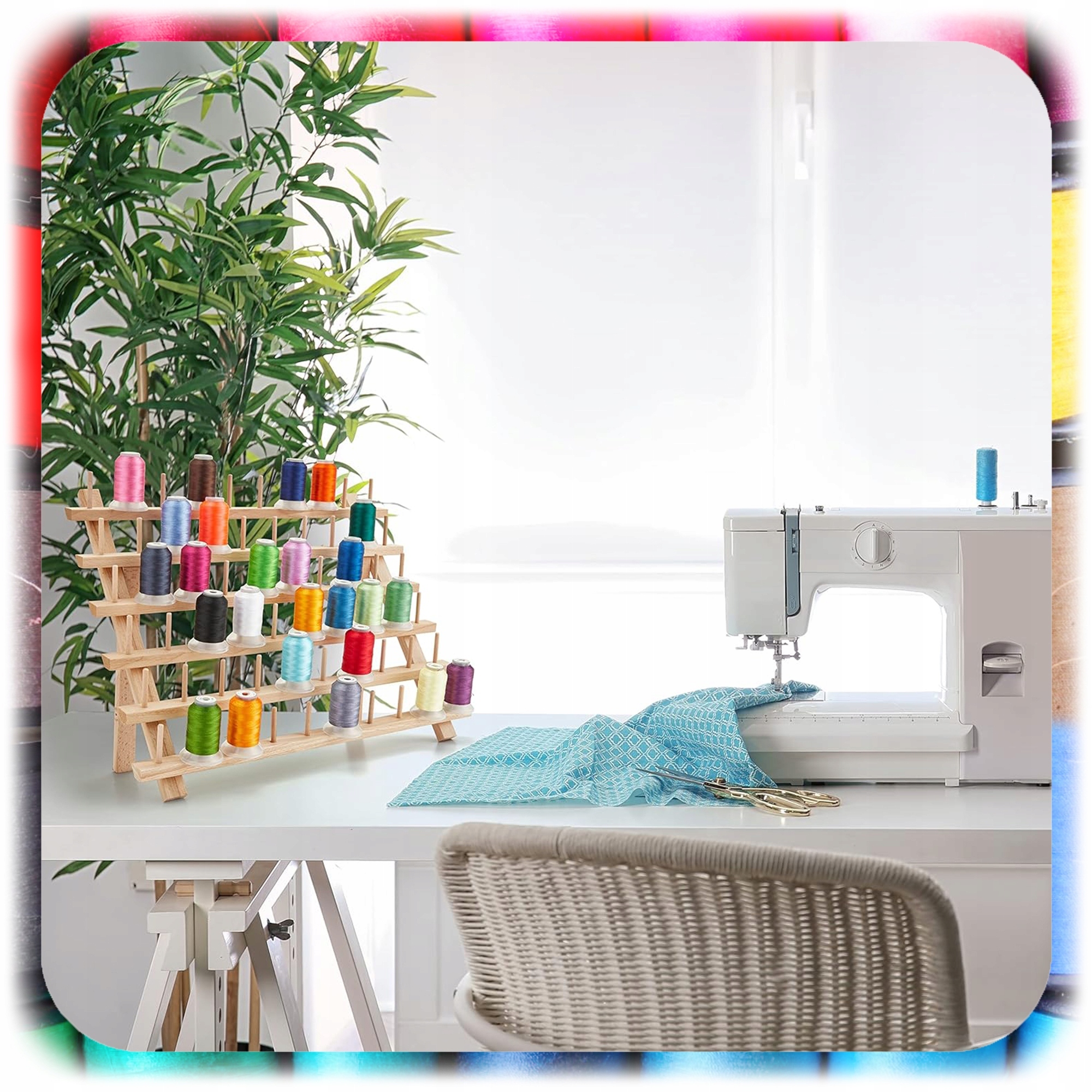 Ця дерев’яна підставка для ниток є практичним рішенням, яке дозволяє підтримувати порядок серед бобін, полегшує роботу та надає інтер’єру природного, елегантного характеру.