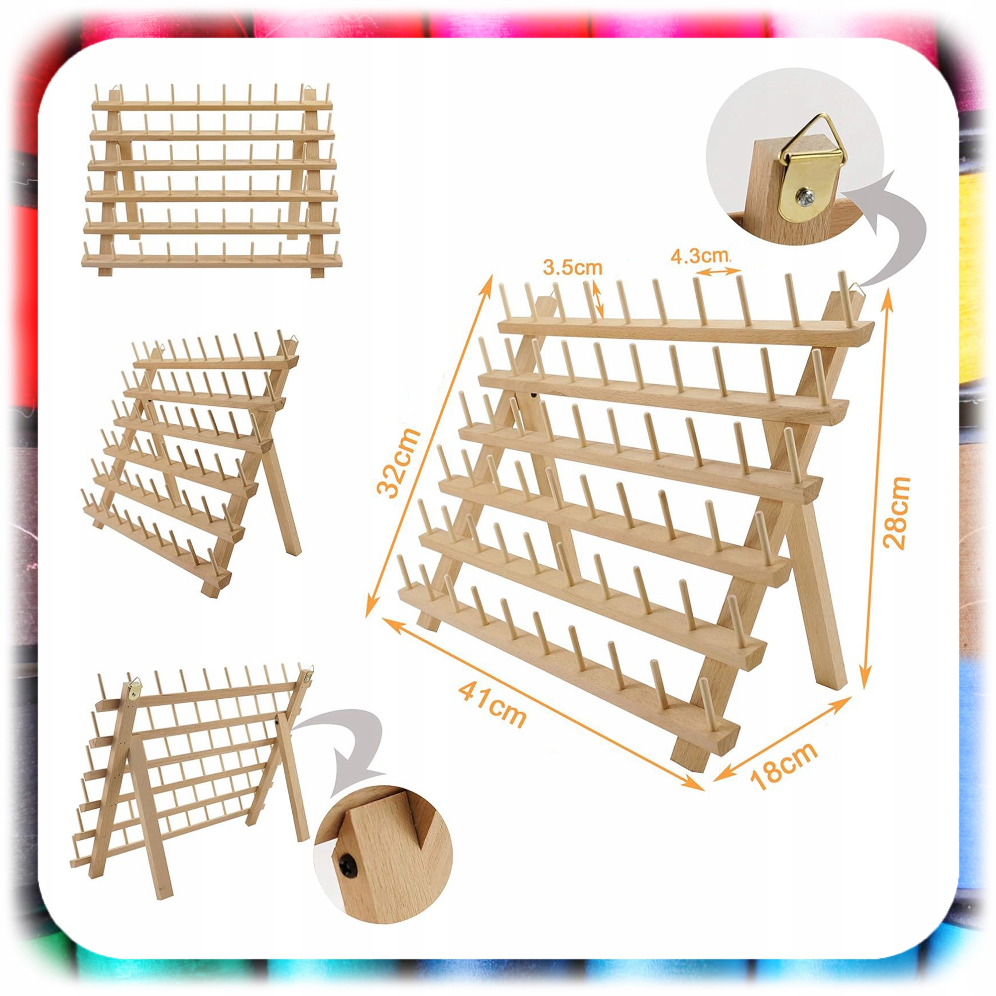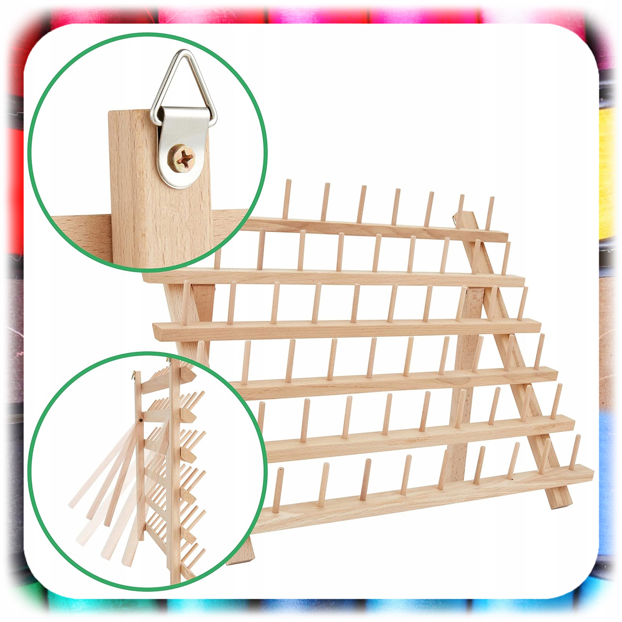 НИТКА ОРГАНАЙЗЕР 60 БОБІН ДЛЯ ПОШИТТЯ ВИШИВКИ ДЕРЕВ'ЯНА ПІДСТАВКА ДЛЯ НИТОК РУЧКА