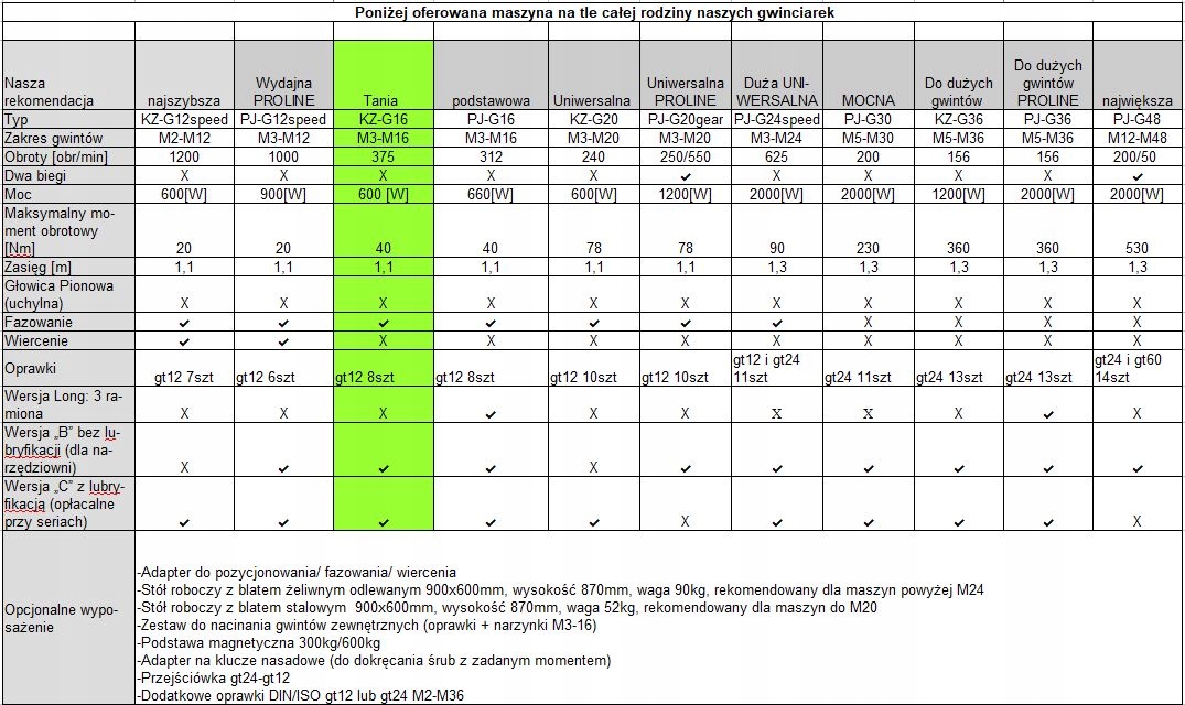Діапазон різьблення M3-M16 та Найбільші швидкість обертання 375 об/с .