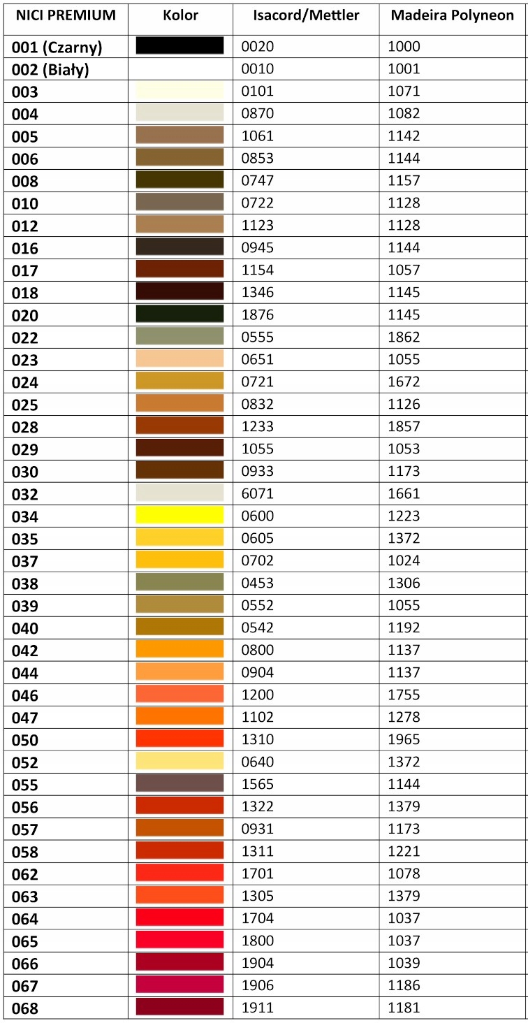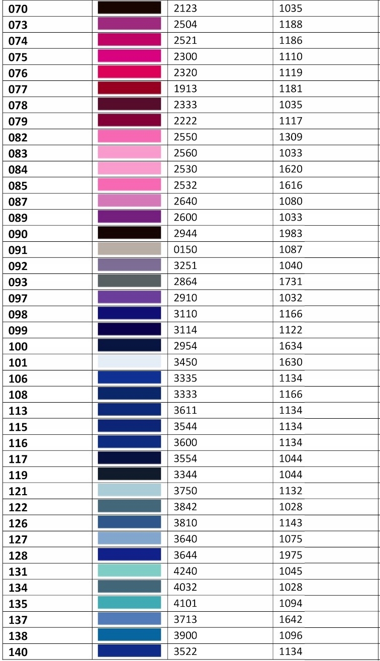 ТАБЛИЦЯ КОЛЬОРІВ НИТОК ПРЕМІУМ