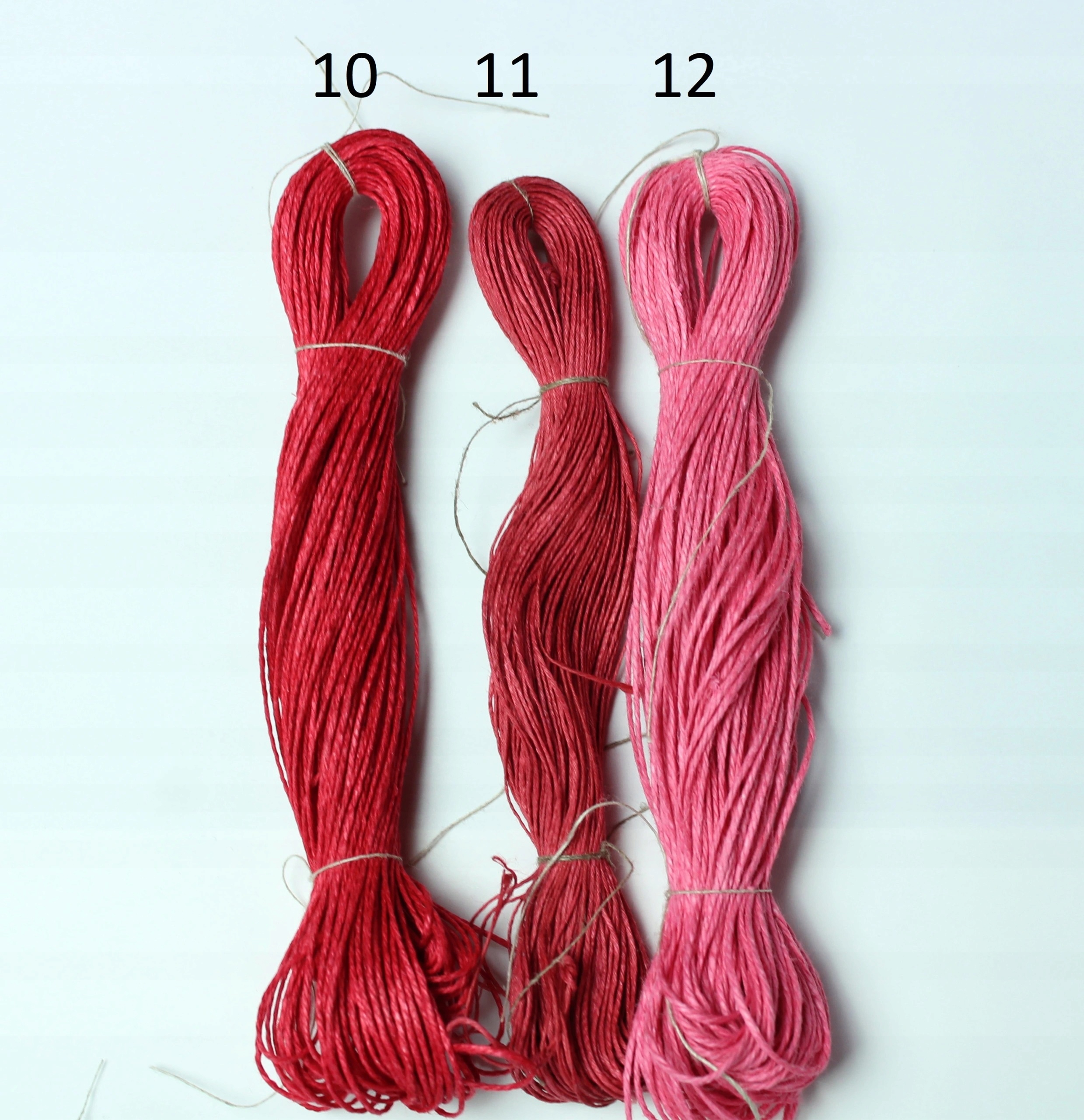 Ми пропонуємо нитки в скеінах 30 м . ціна за один скеїн . Товщина пряжі відрізняється - тим тонше скуйн на малюнку - тонша нитка. Доступні кольори, як на малюнках. Будь ласка, враховуйте, що монітори можуть трохи змінити колір нитки.